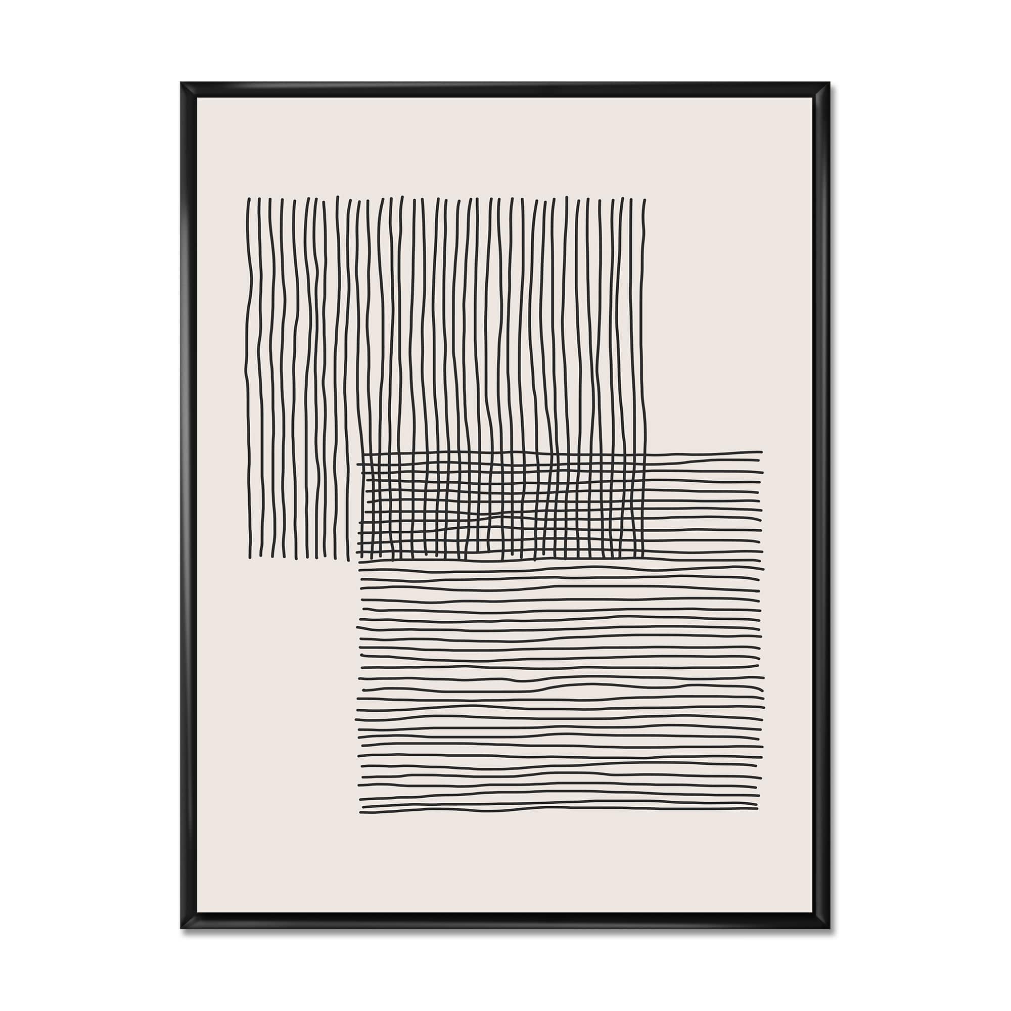 Designart - Minimal Geometric Lines And Squares II - Modern Canvas Wall Art Print in Black Frame