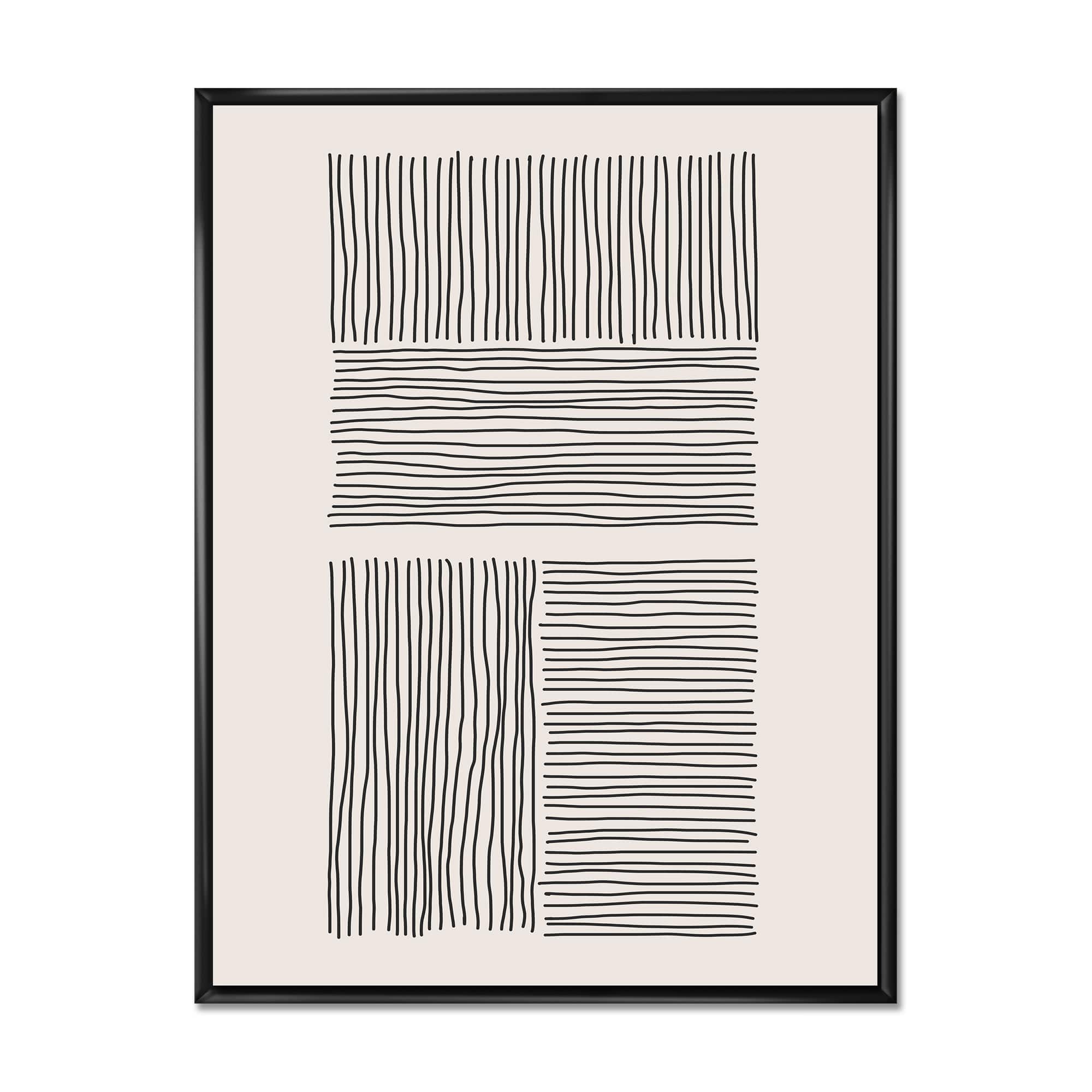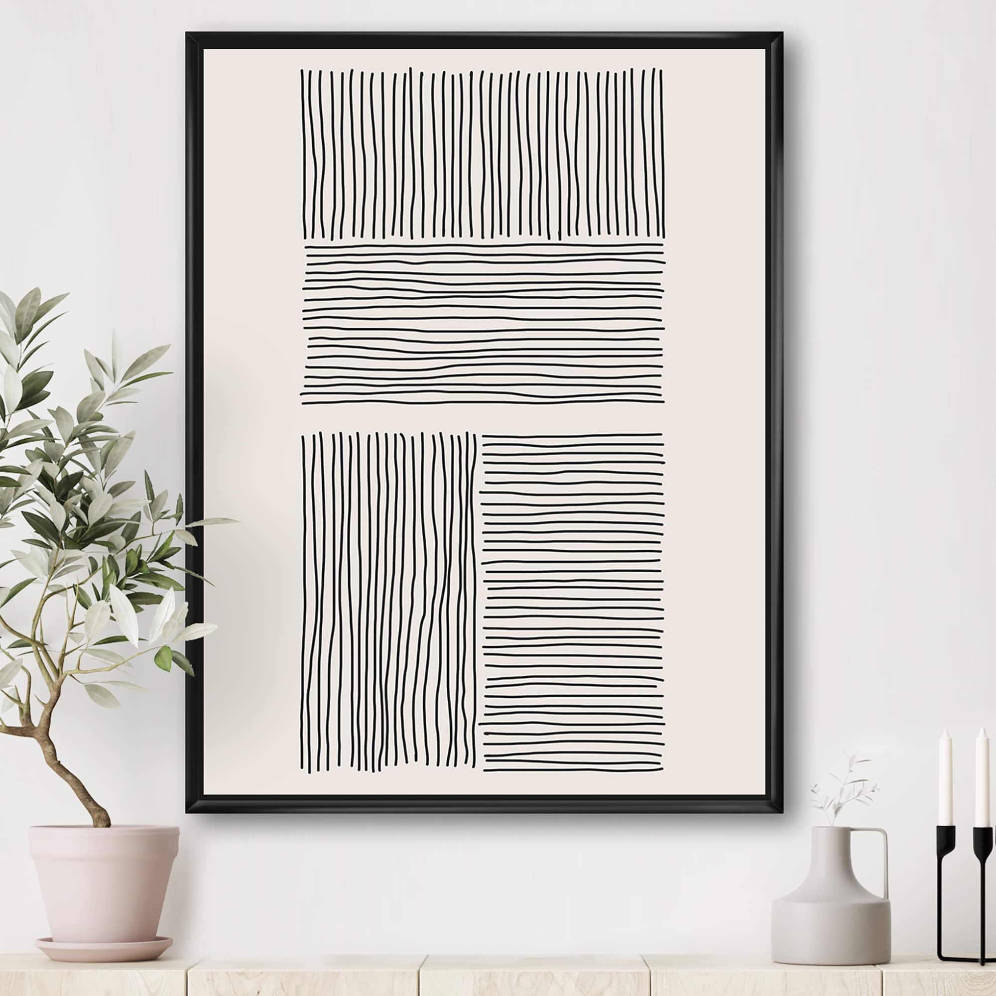 Designart - Minimal Geometric Lines And Squares IV - Modern Canvas Wall Art Print in Black Frame