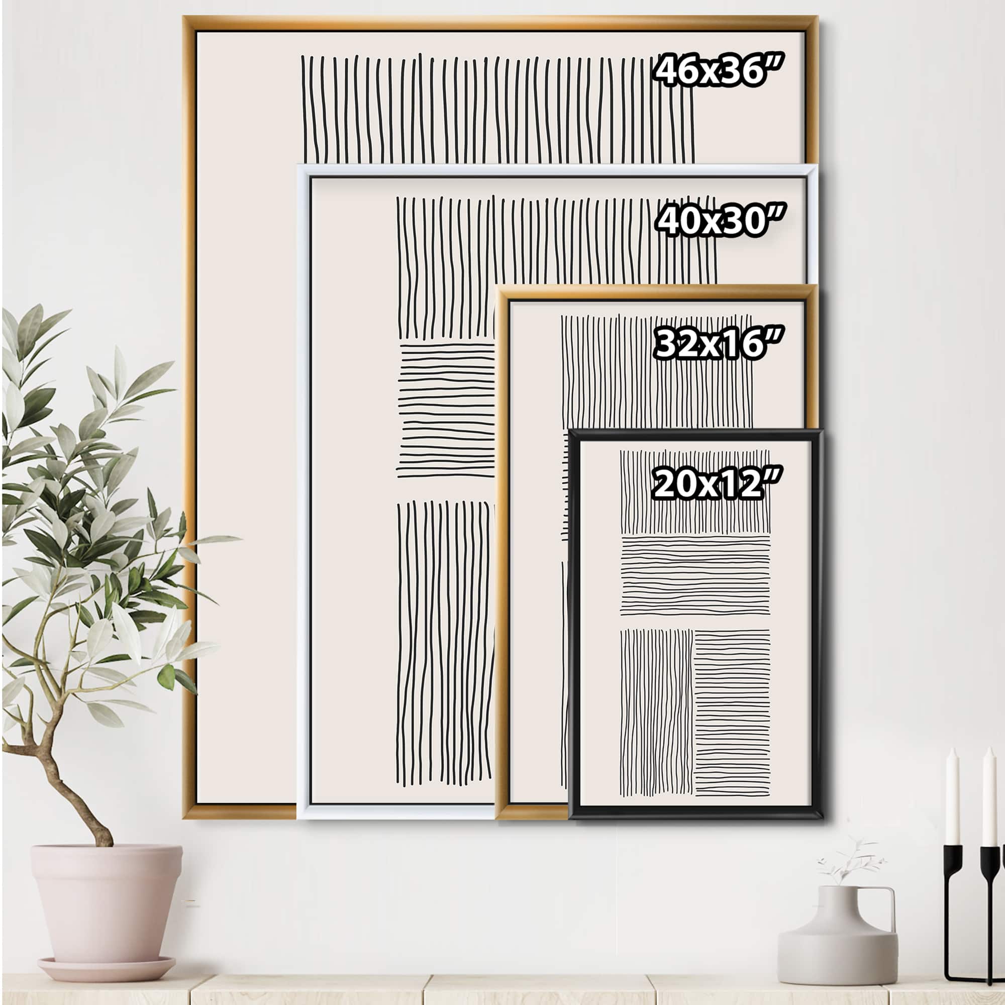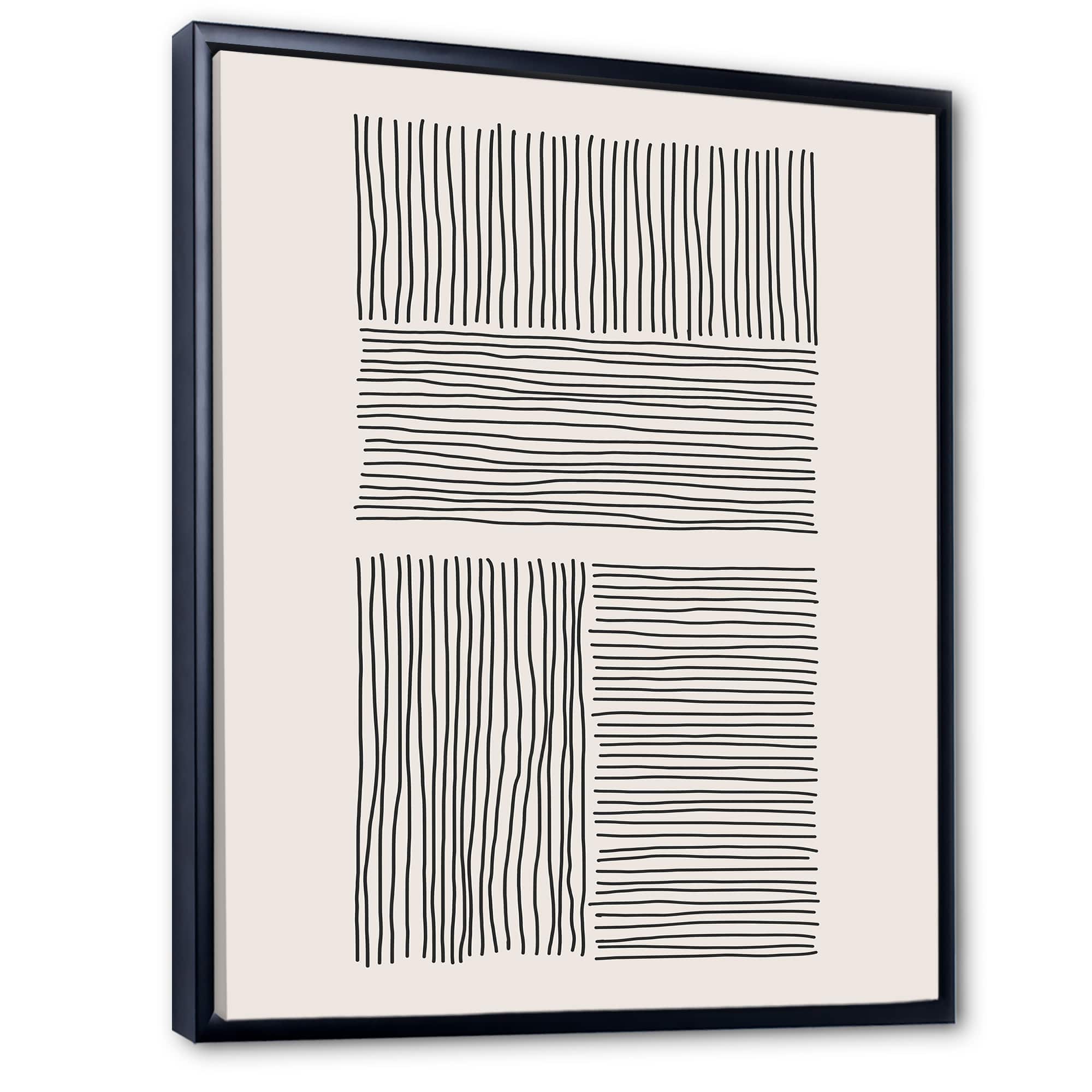 Designart - Minimal Geometric Lines And Squares IV - Modern Canvas Wall Art Print in Black Frame