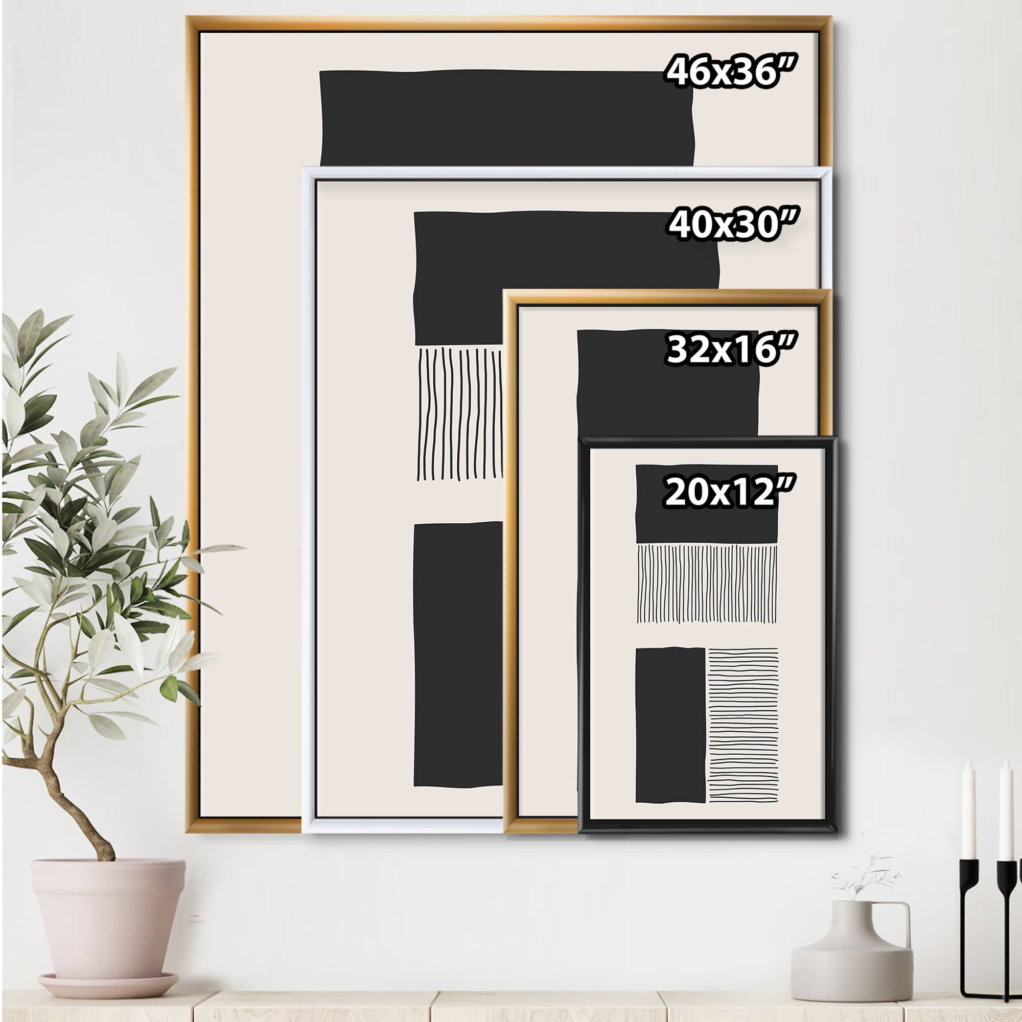 Designart - Minimal Geometric Lines And Squares VII - Modern Canvas Wall Art Print in Black Frame