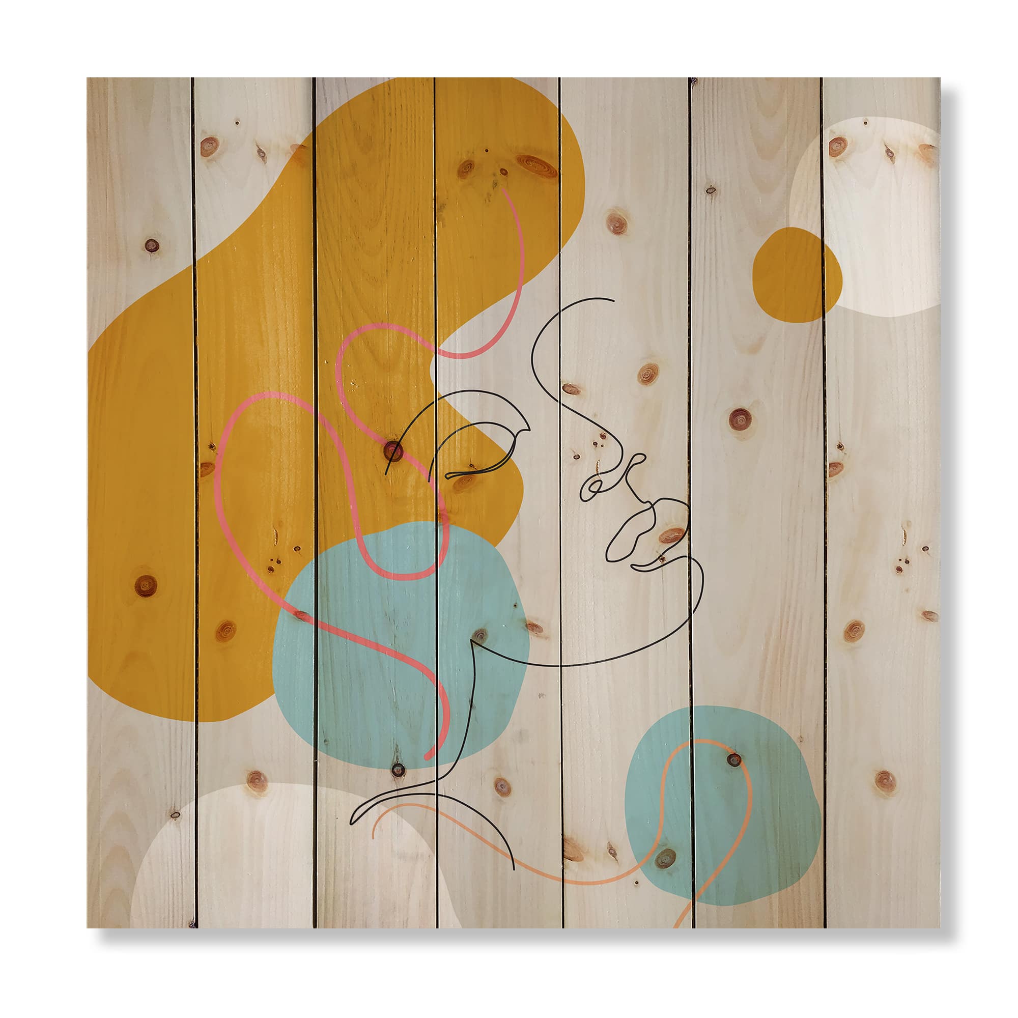 Designart - Minimal One Line Portrait of Female Face I - Modern Print on Natural Pine Wood