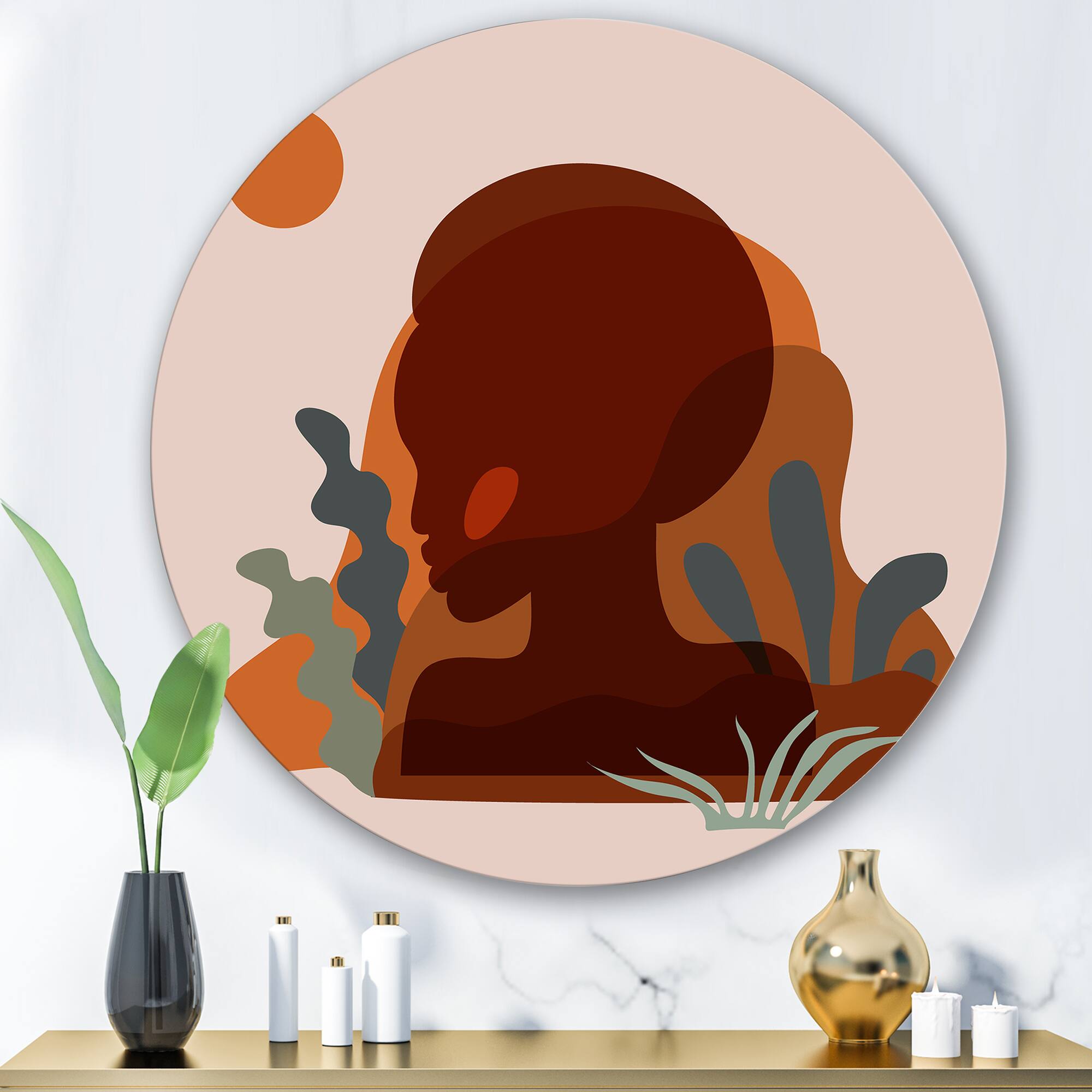 Designart - Minimal Silhouette Of Afro American Woman - Modern Metal Circle Wall Art