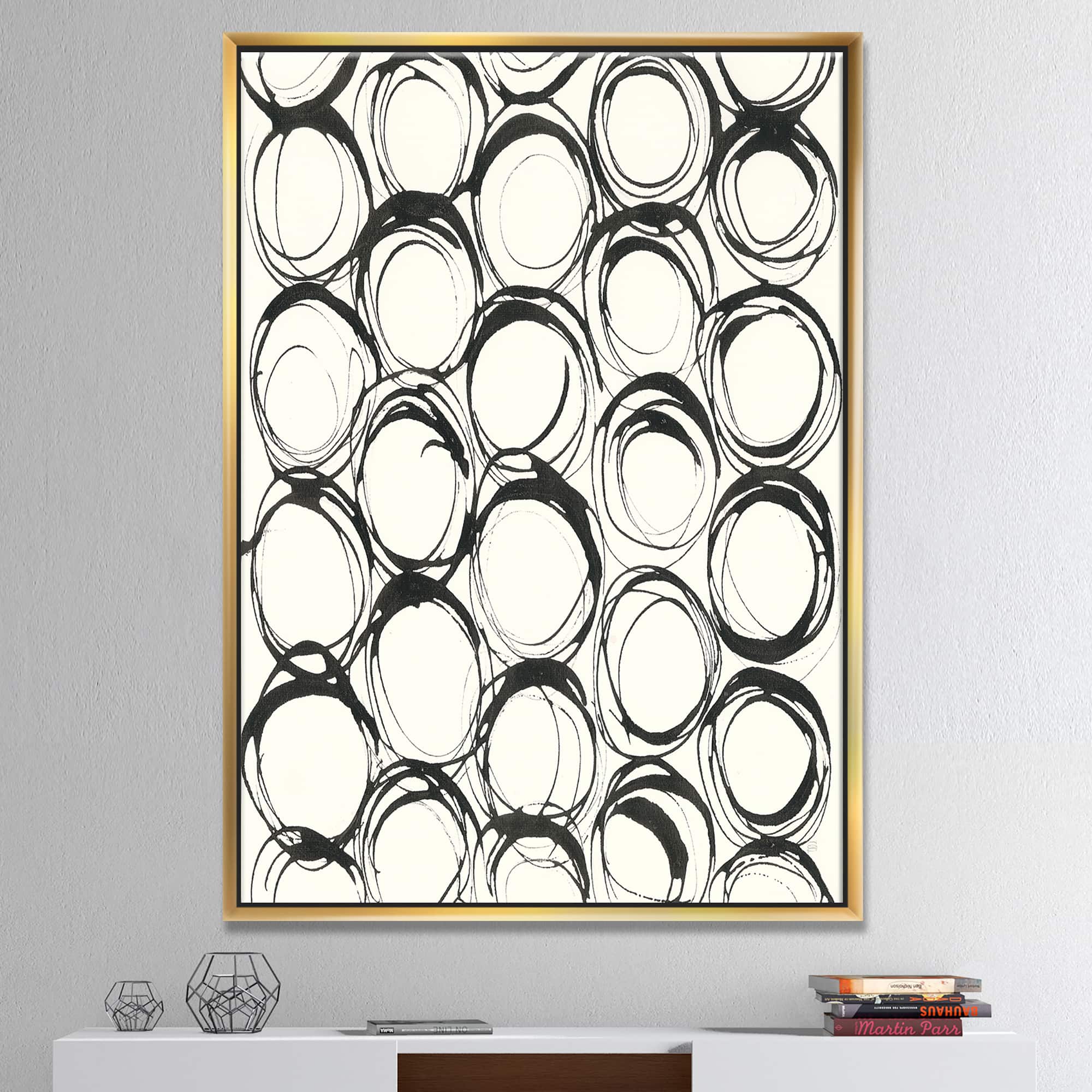 Designart - minimalist black and white II - Transitional Canvas in Gold Frame