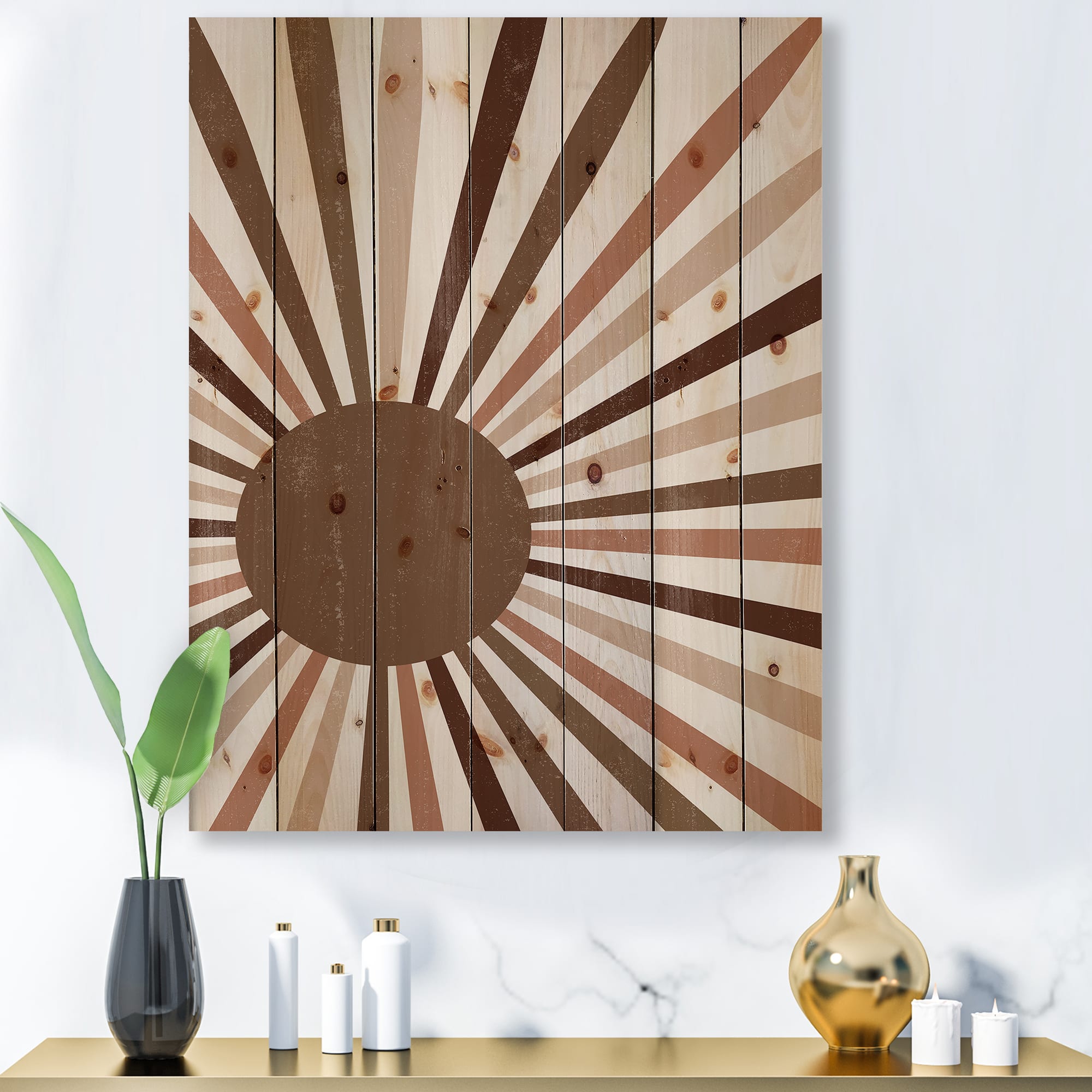 Designart - Minimalist Bright Shining Terracotta Sun Rays - Modern Print on Natural Pine Wood