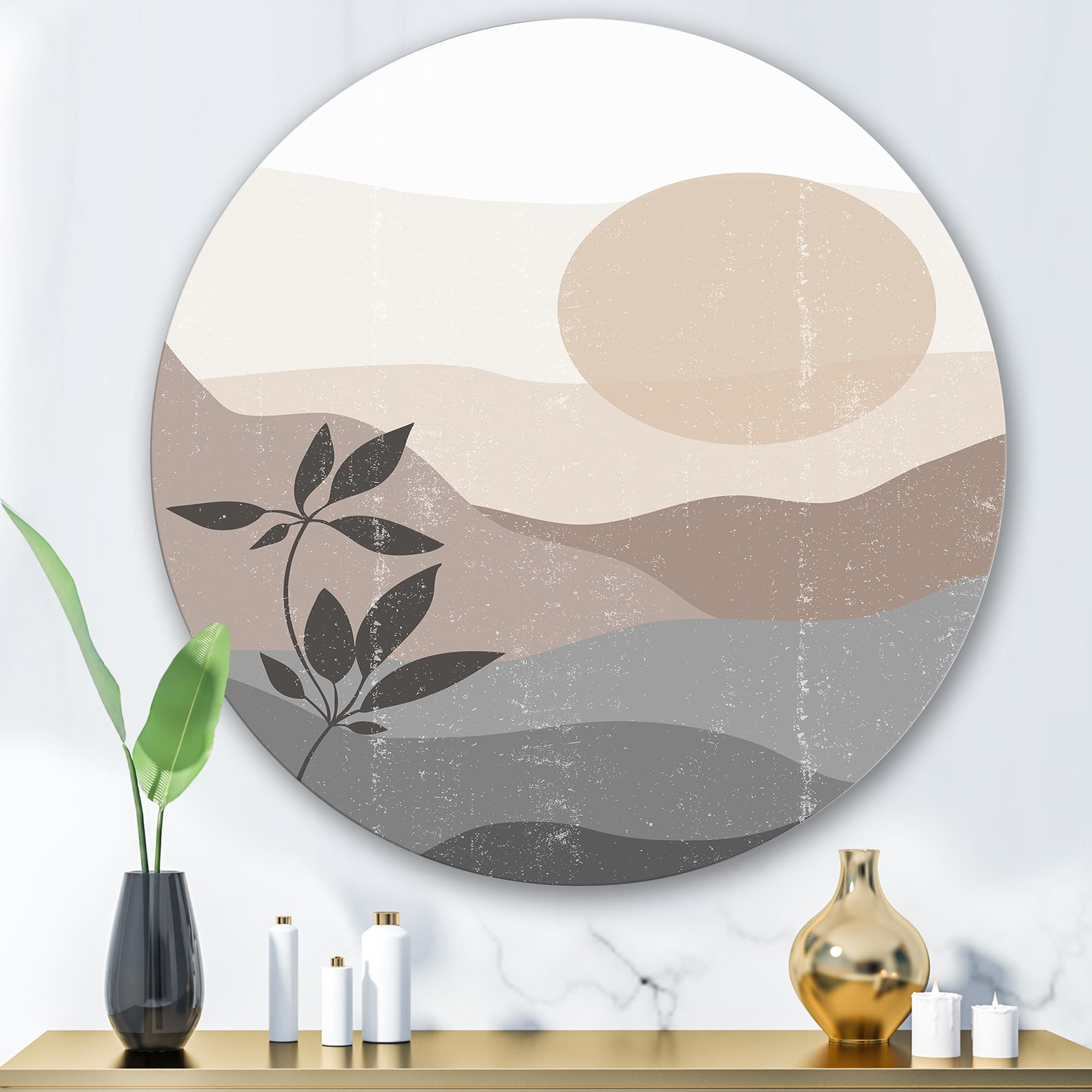 Designart - Minimalist Mountain Landscape At Sunset - Modern Metal Circle Wall Art