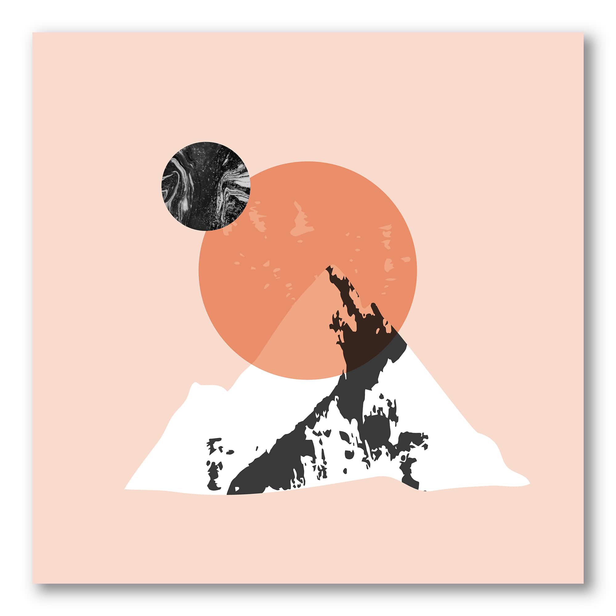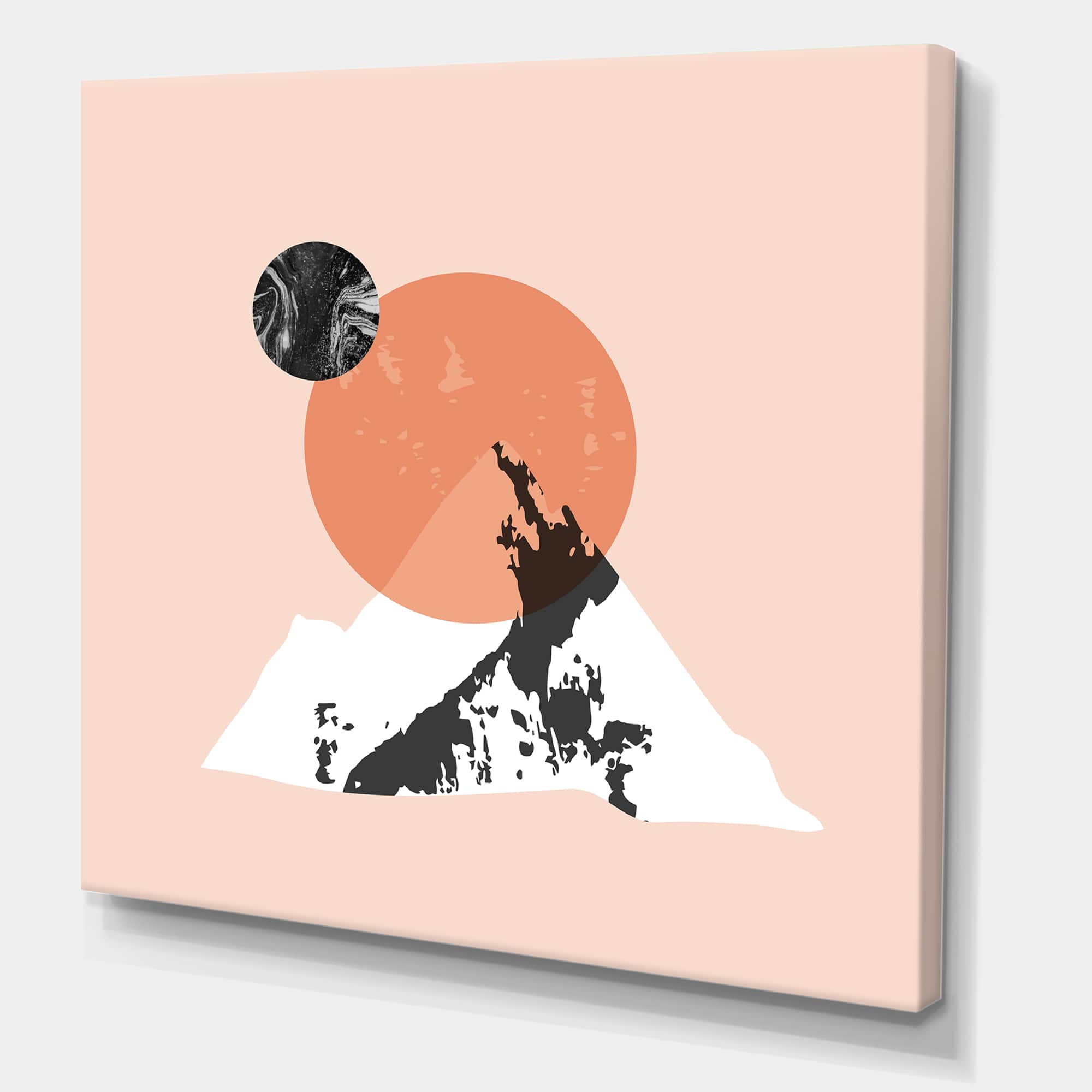 Designart - Modern Minimalist Mountain Sun and Moon - Modern Canvas Wall Art Print