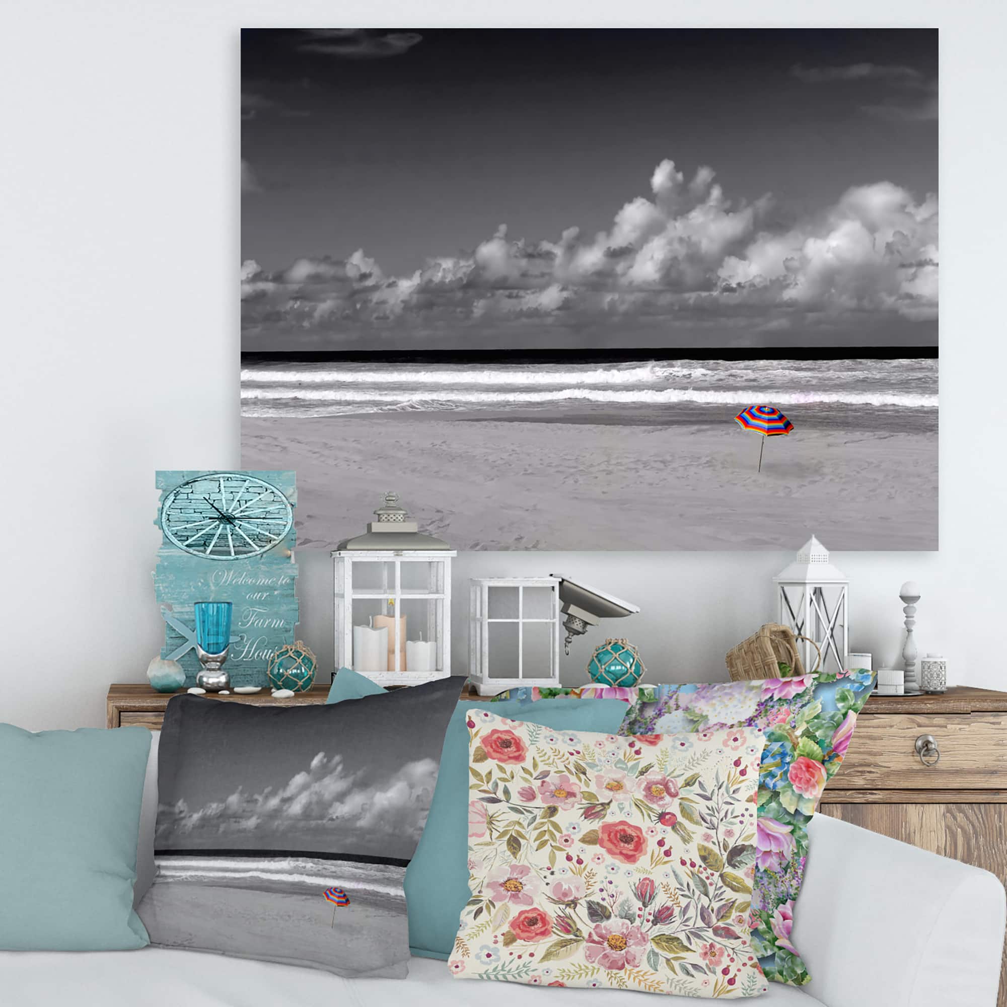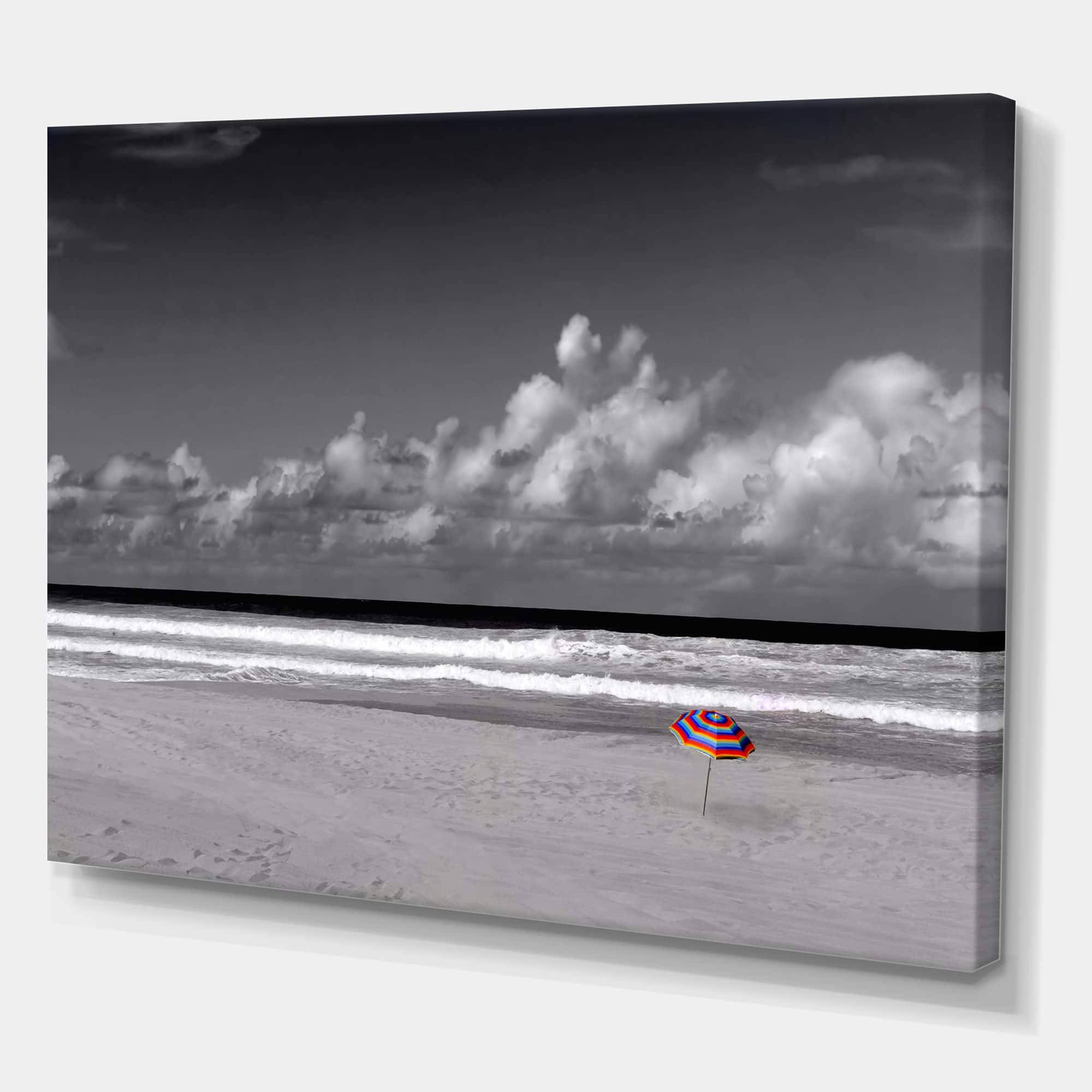 Designart - Monochrome Coastline Under Cloudy Sky - Lake House Canvas Wall Art Print