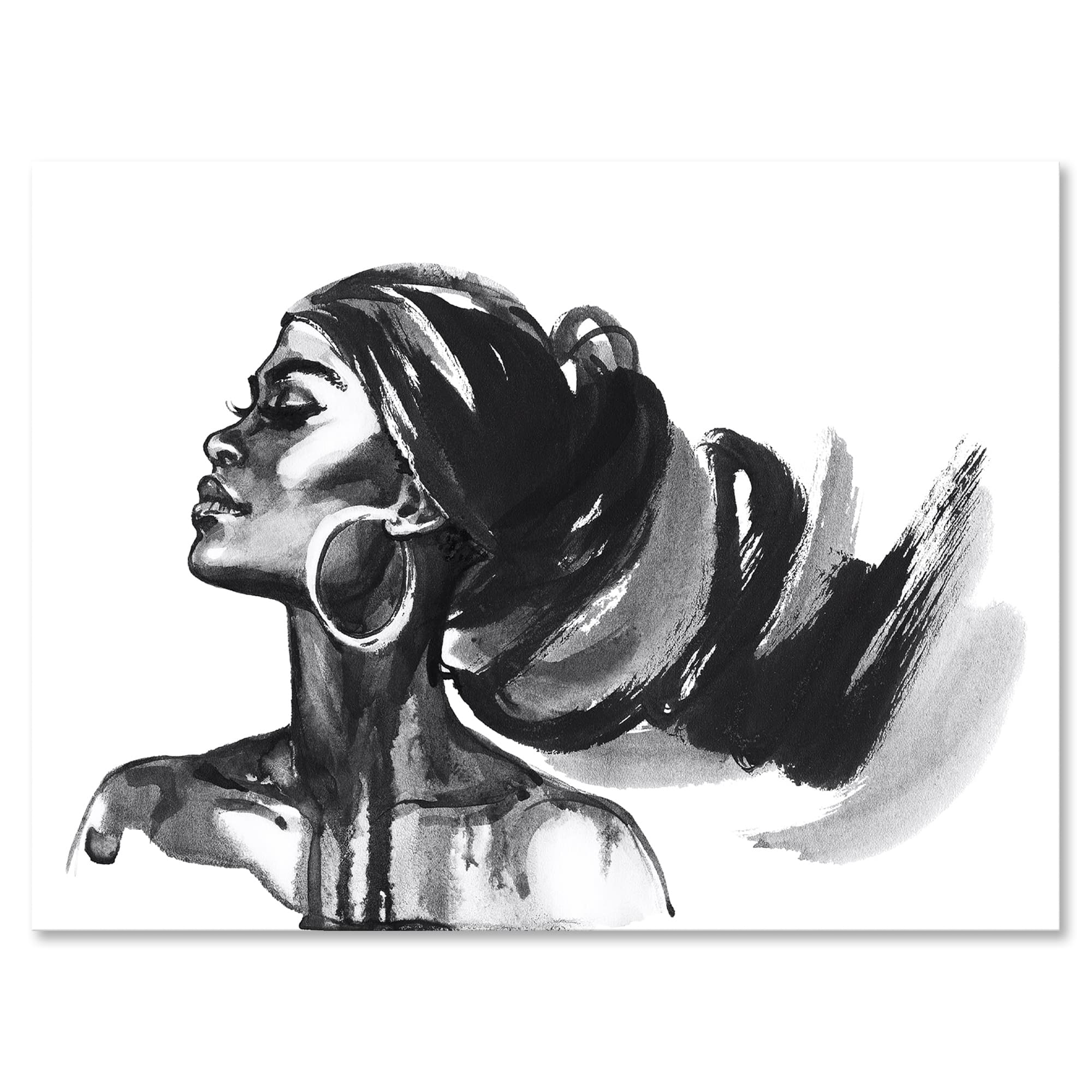 Designart - Monochrome Portrait of African American Woman IV - Modern Canvas Wall Art Print