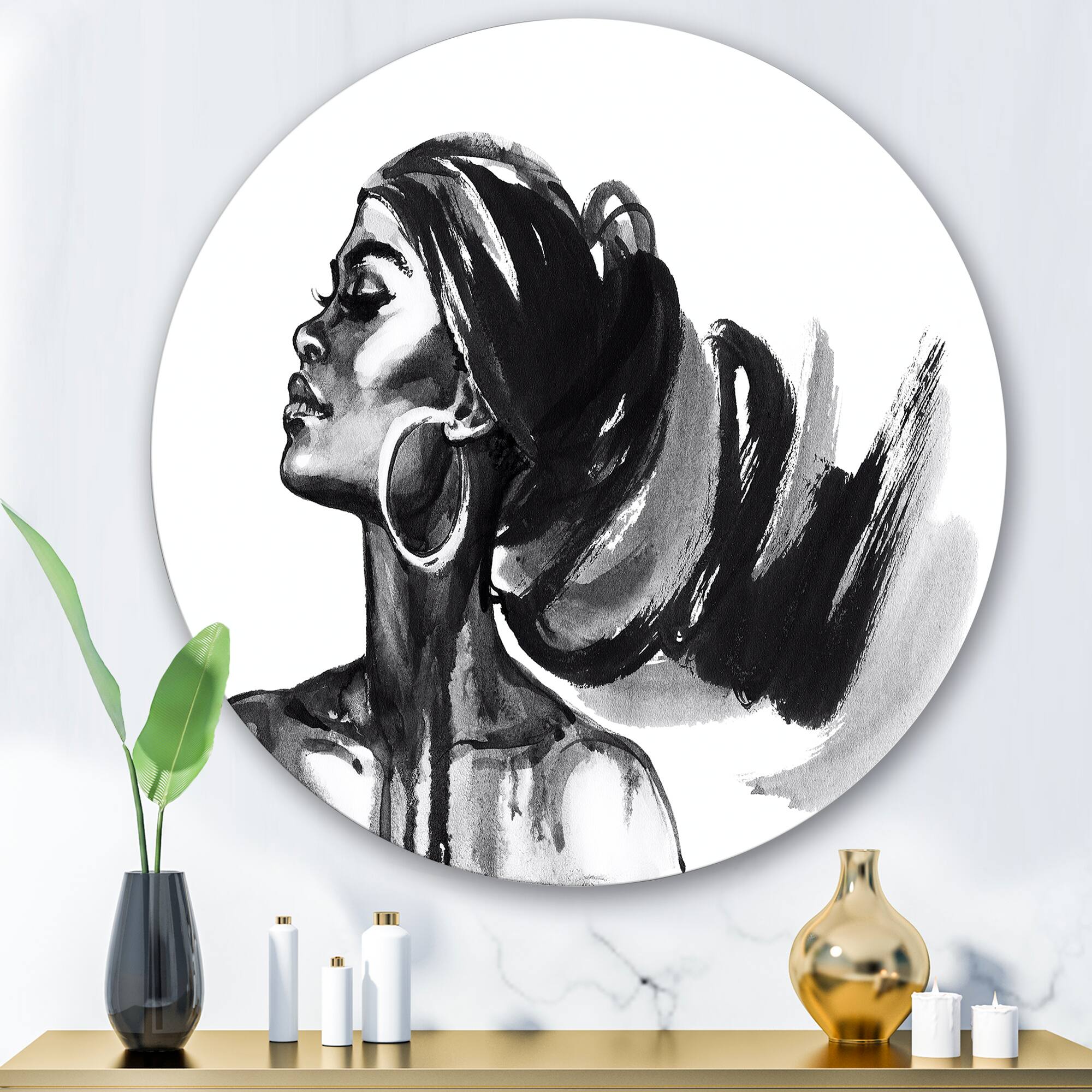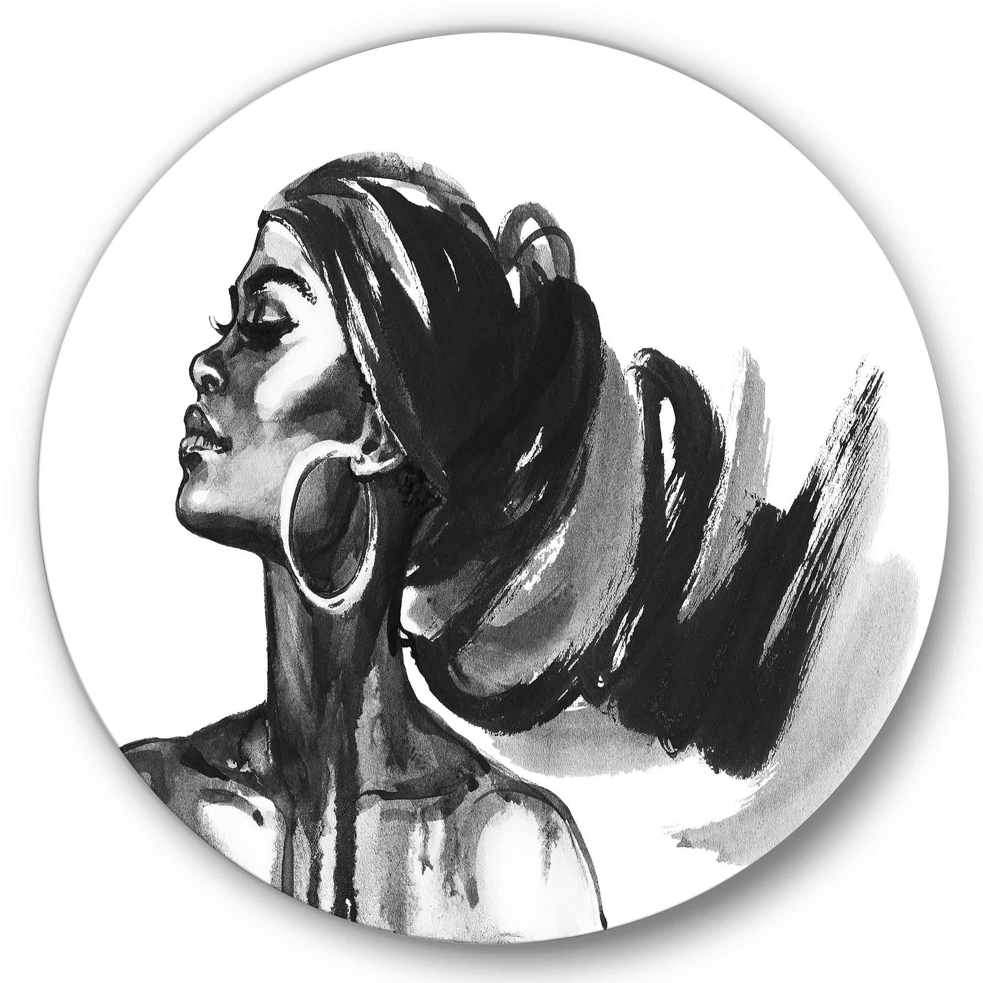 Designart - Monochrome Portrait of African American Woman IV - Modern Metal Circle Wall Art