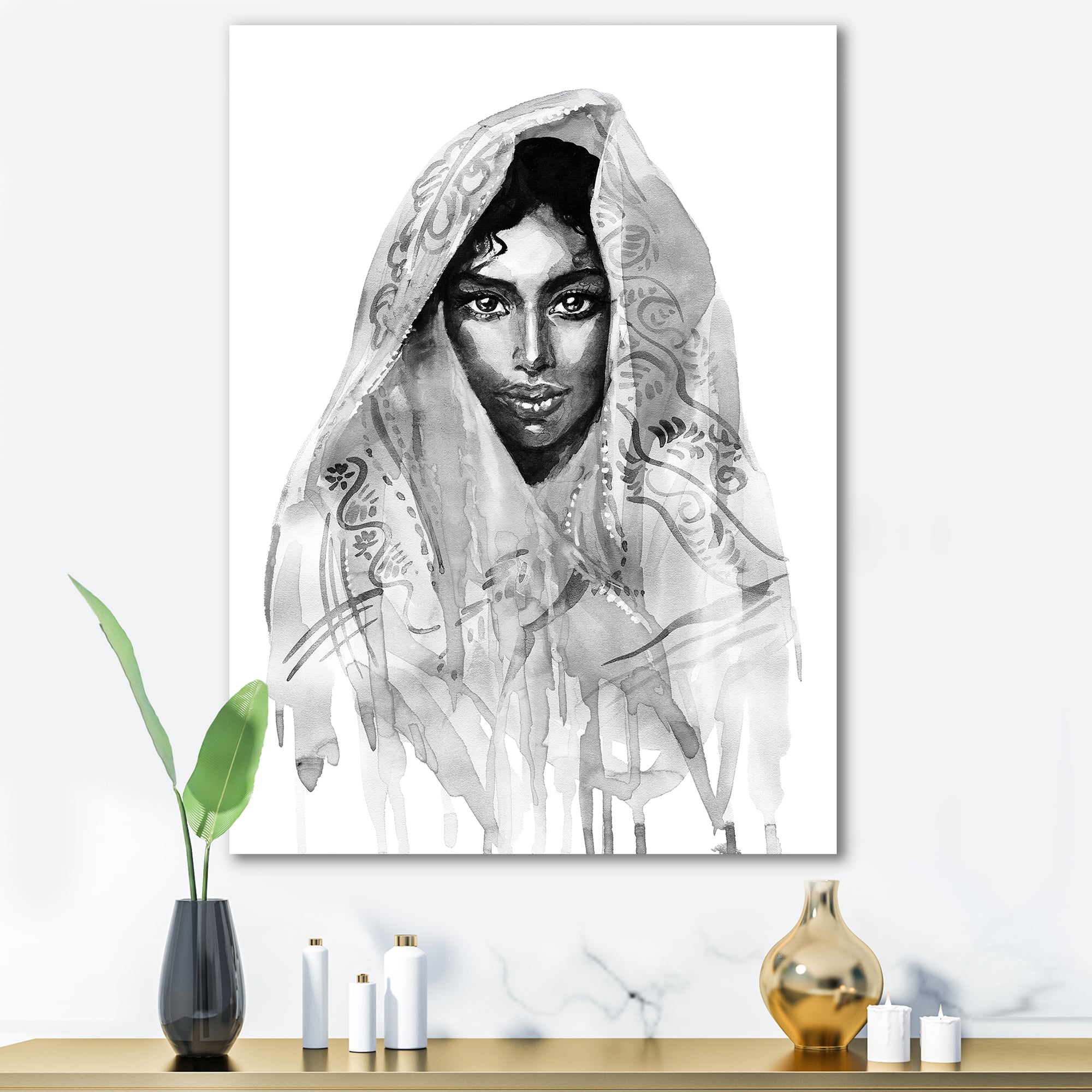 Designart - Monochrome Portrait of Young Indian Woman I - Modern Canvas Wall Art Print