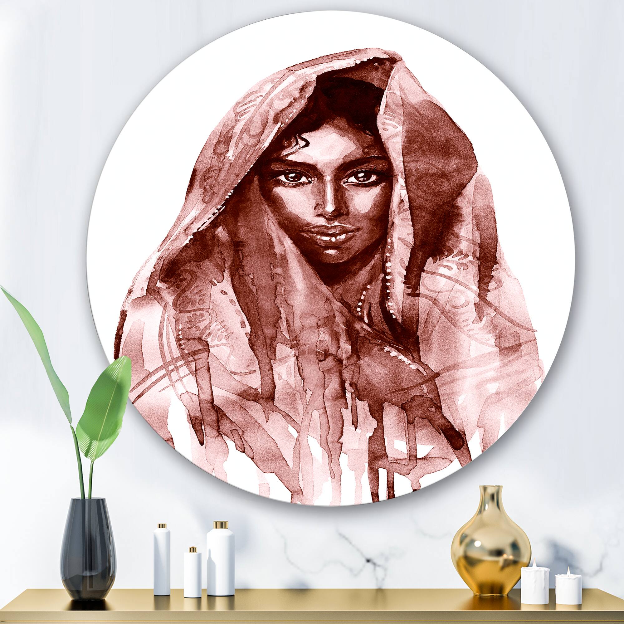 Designart - Monochrome Portrait of Young Indian Woman II - Modern Metal Circle Wall Art