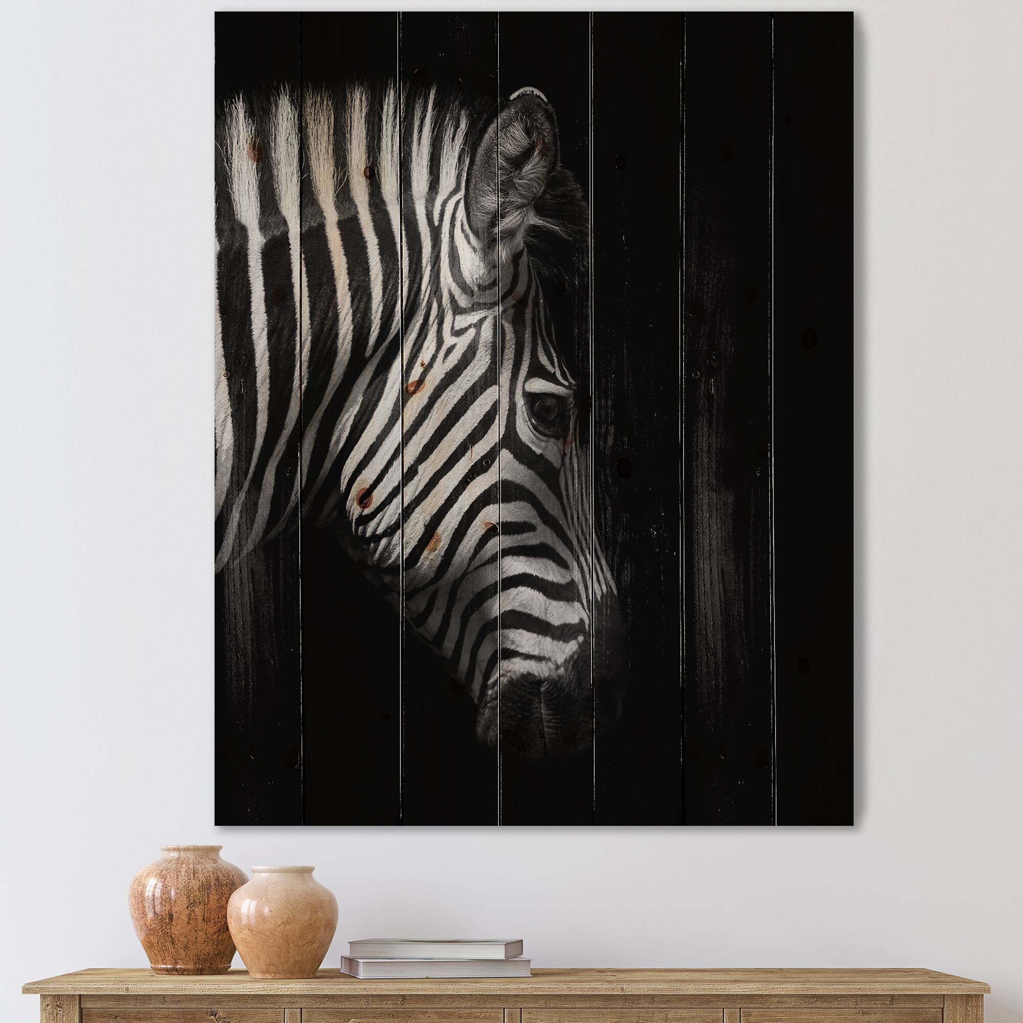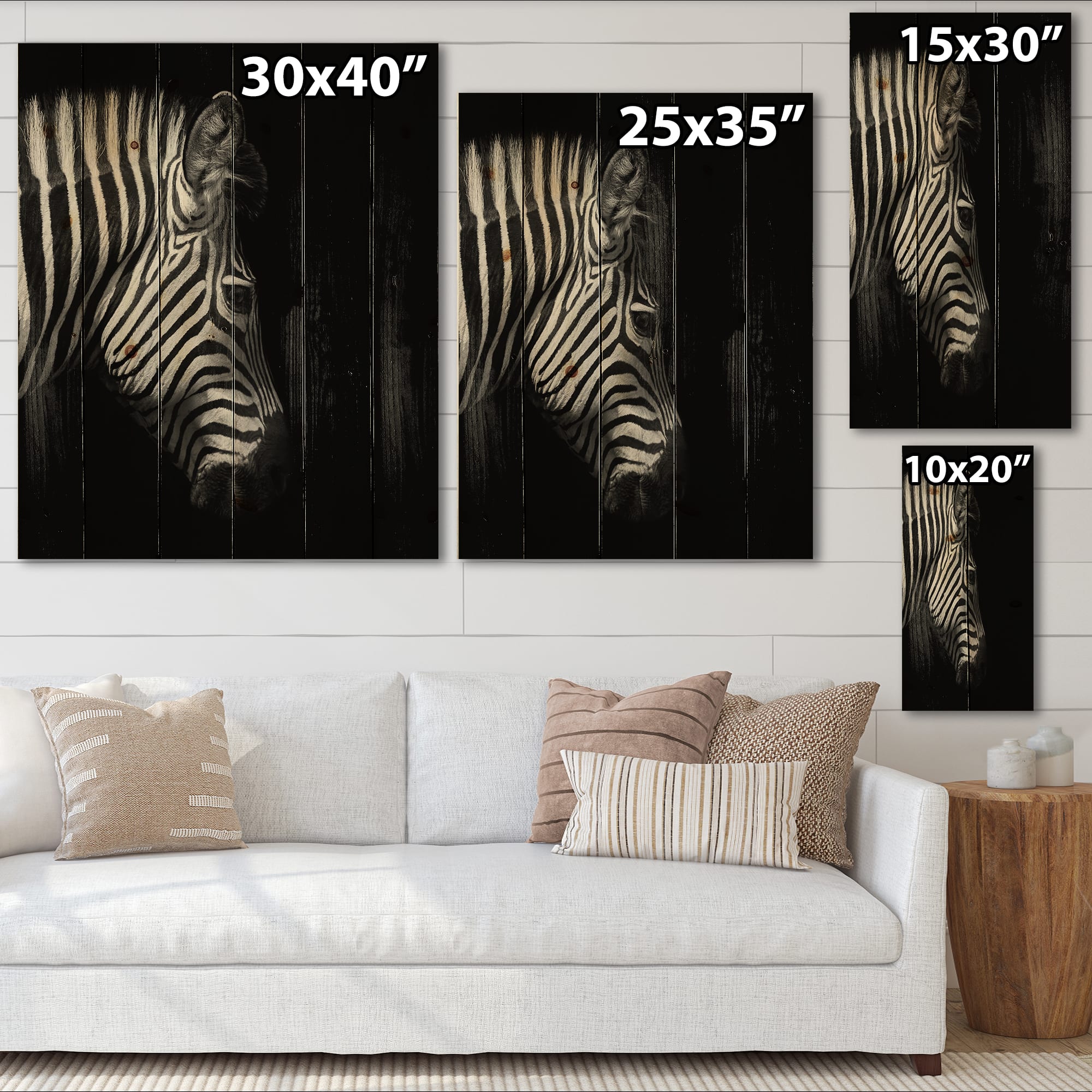 Designart - Monochrome Portrait of Zebra Head - Farmhouse Print on Natural Pine Wood