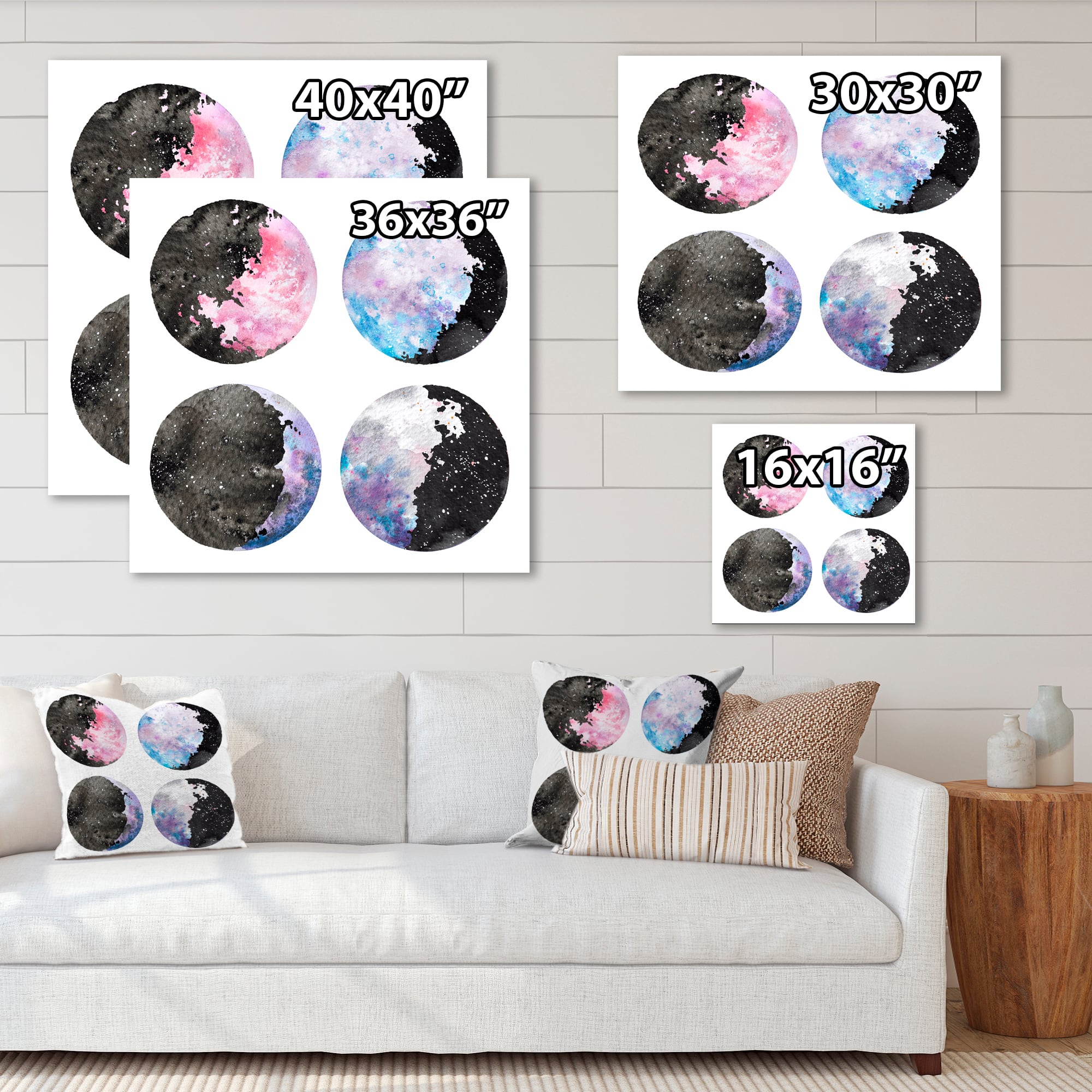 Designart - Moon Phases With Stars and Sky - Bohemian & Eclectic Canvas Wall Art Print