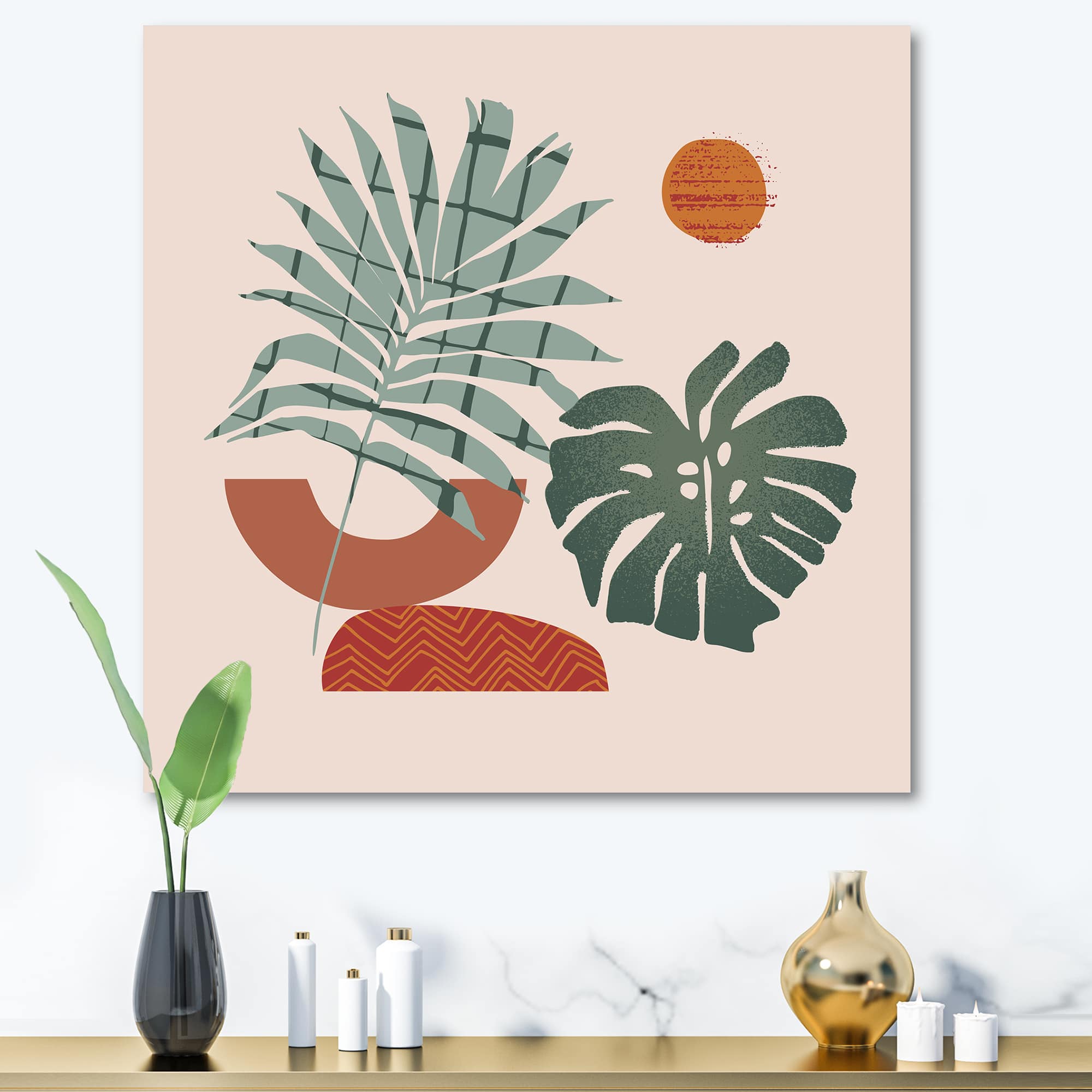 Designart - Moon & Sun Shapes In Retro Green & Terracotta Tone - Modern Canvas Wall Art Print