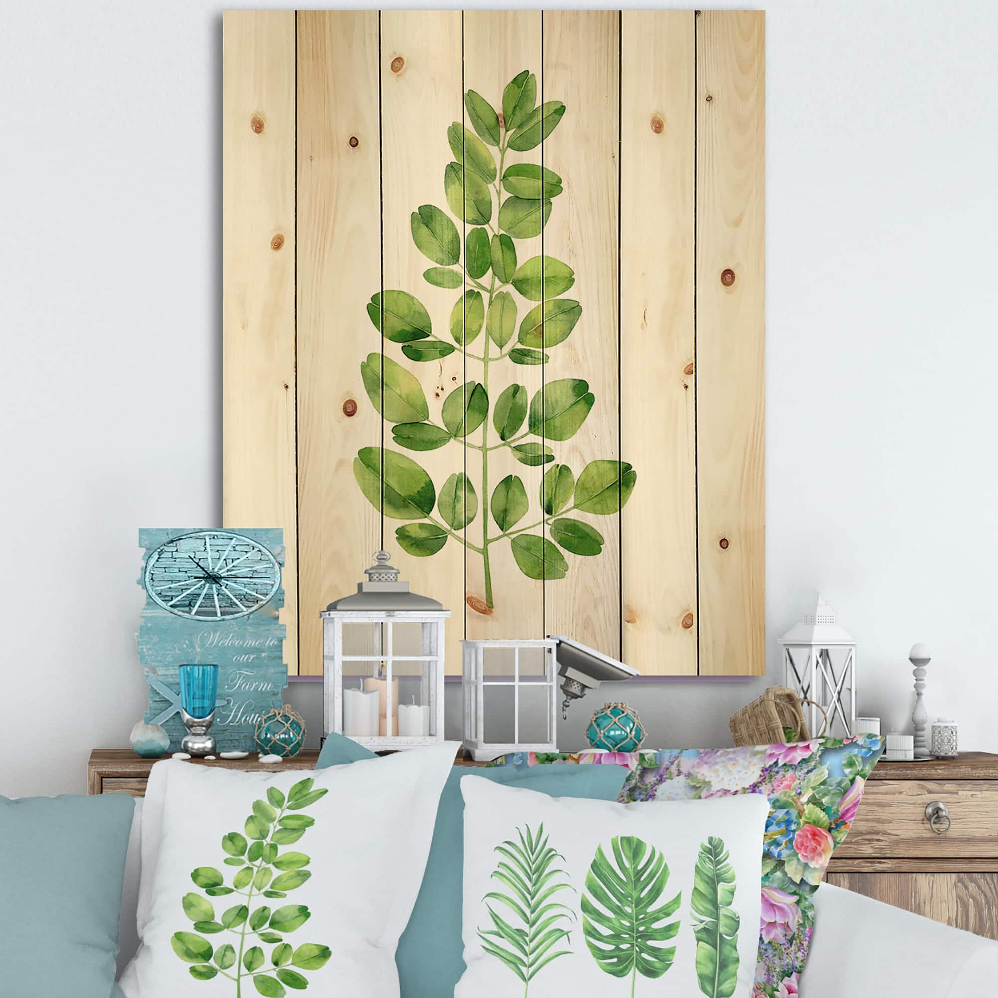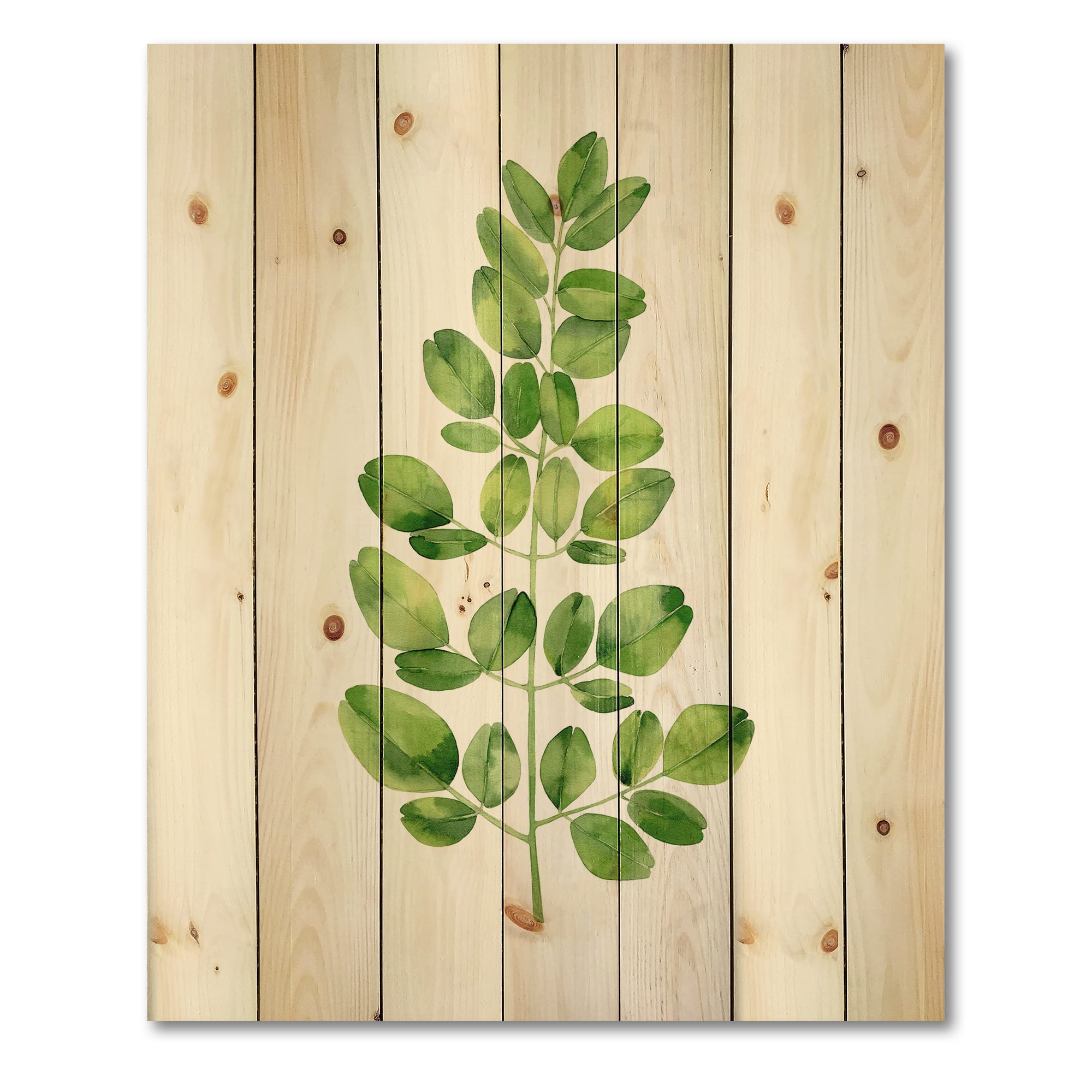Designart - Moringa Branch Tropical Tree Foliage - Farmhouse Print on Natural Pine Wood