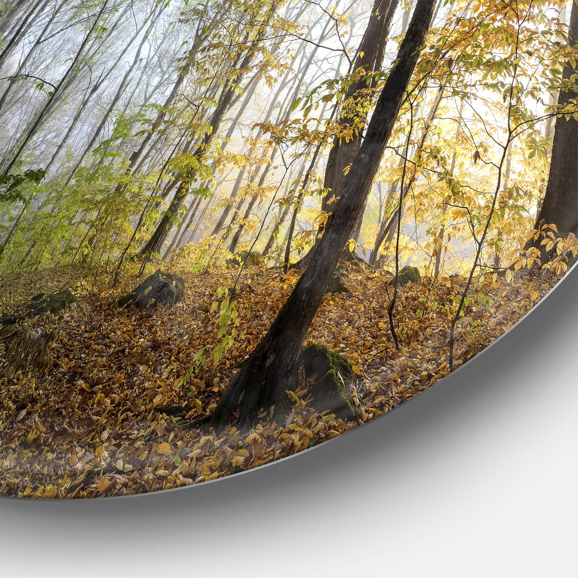 Designart - Morning Forest Panoramic View' Landscape Photography Circle Metal Wall Art