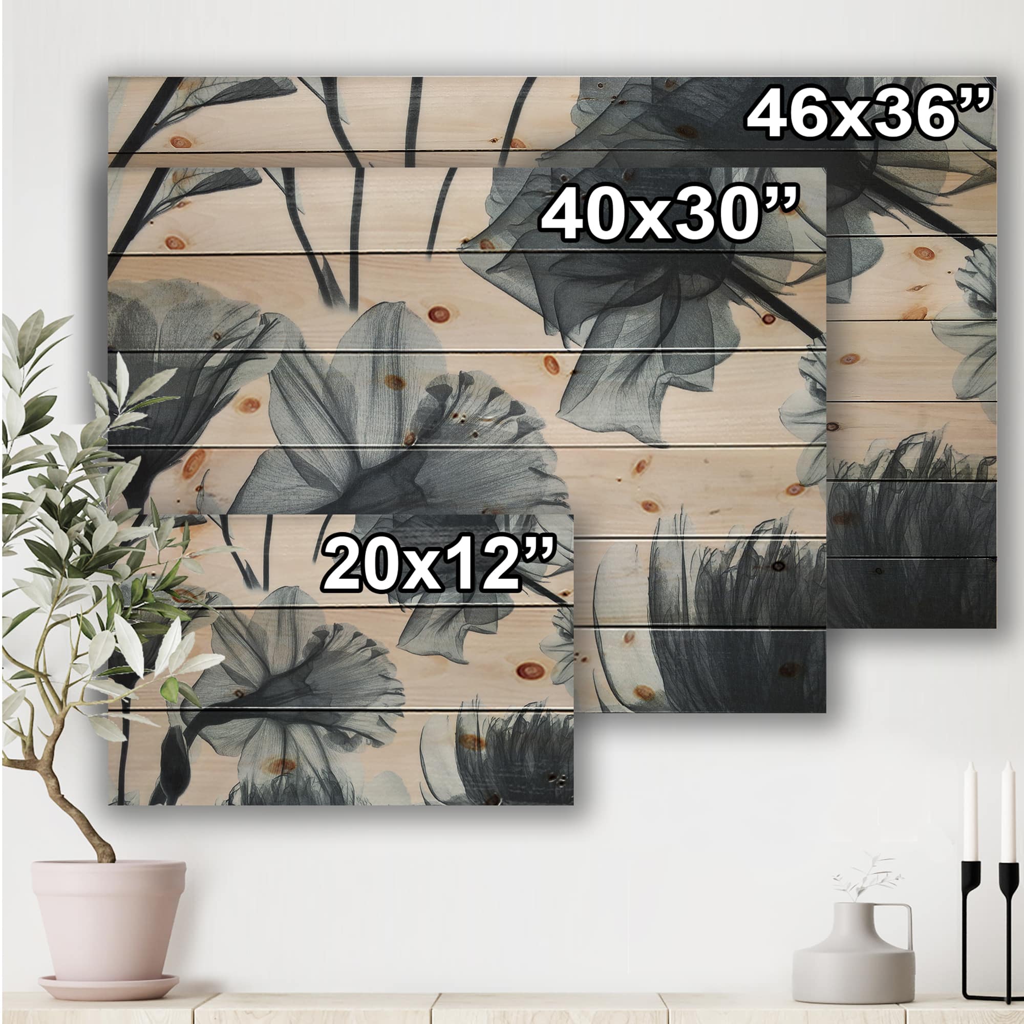 Designart - Mottled Fabric Vintage Flowers - Farmhouse Print on Natural Pine Wood