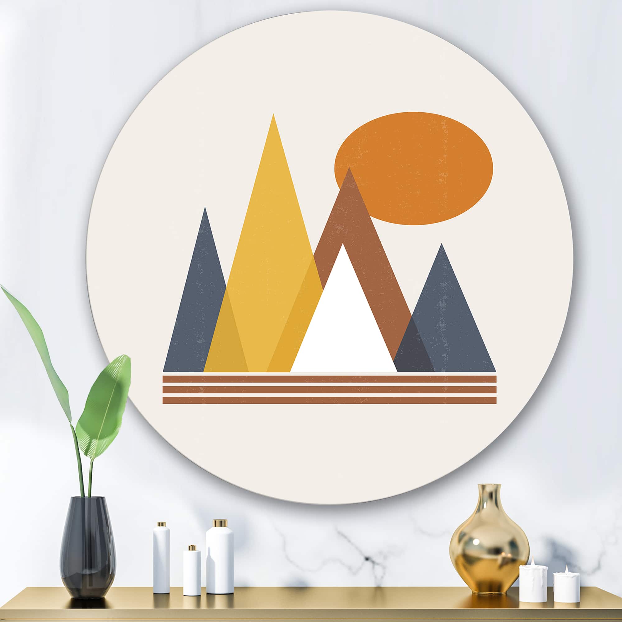Designart - Mountain Abstract and Sun - Modern Metal Circle Wall Art