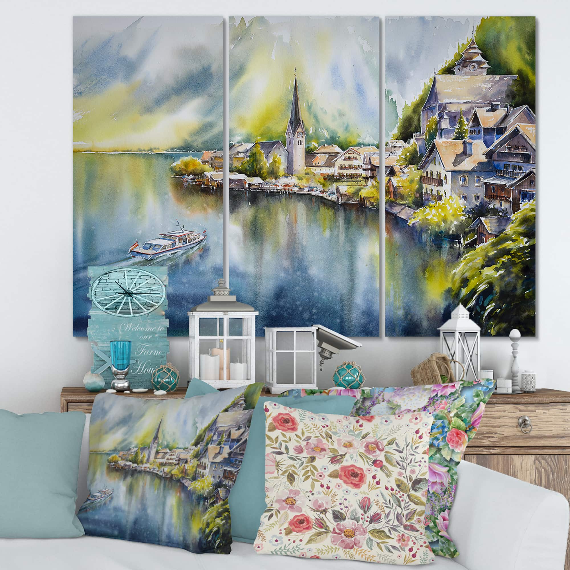 Designart - Mountain Village By The River In Austria - Nautical & Coastal Canvas Wall Art Print