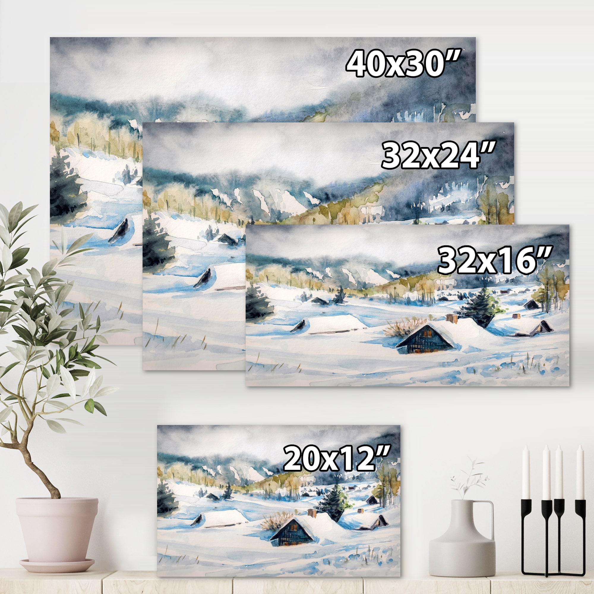 Designart - Mountain Village In Winter - Traditional Canvas Wall Art Print