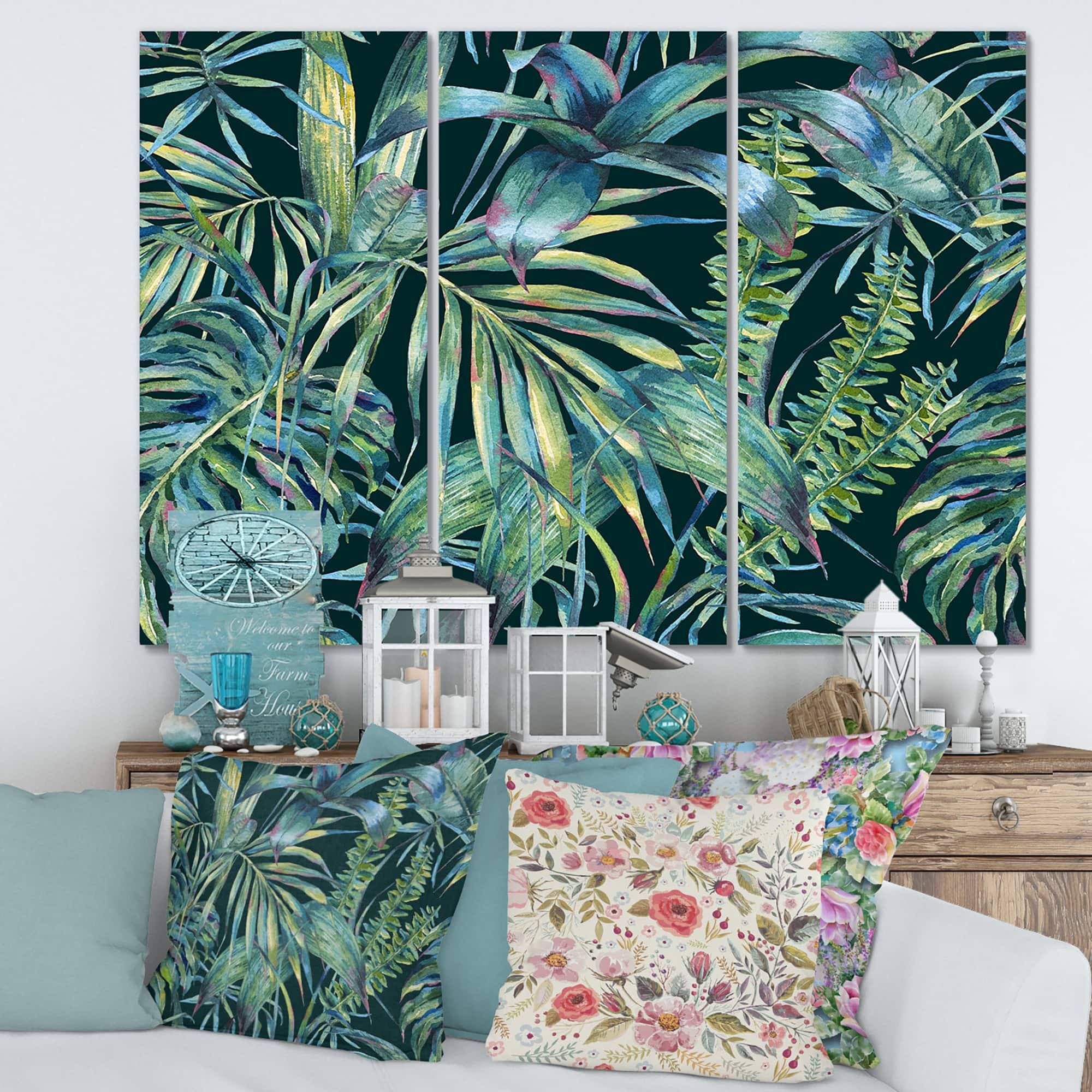 Designart - Natural Leaves Exotic On Dark I - Tropical Canvas Wall Art Print