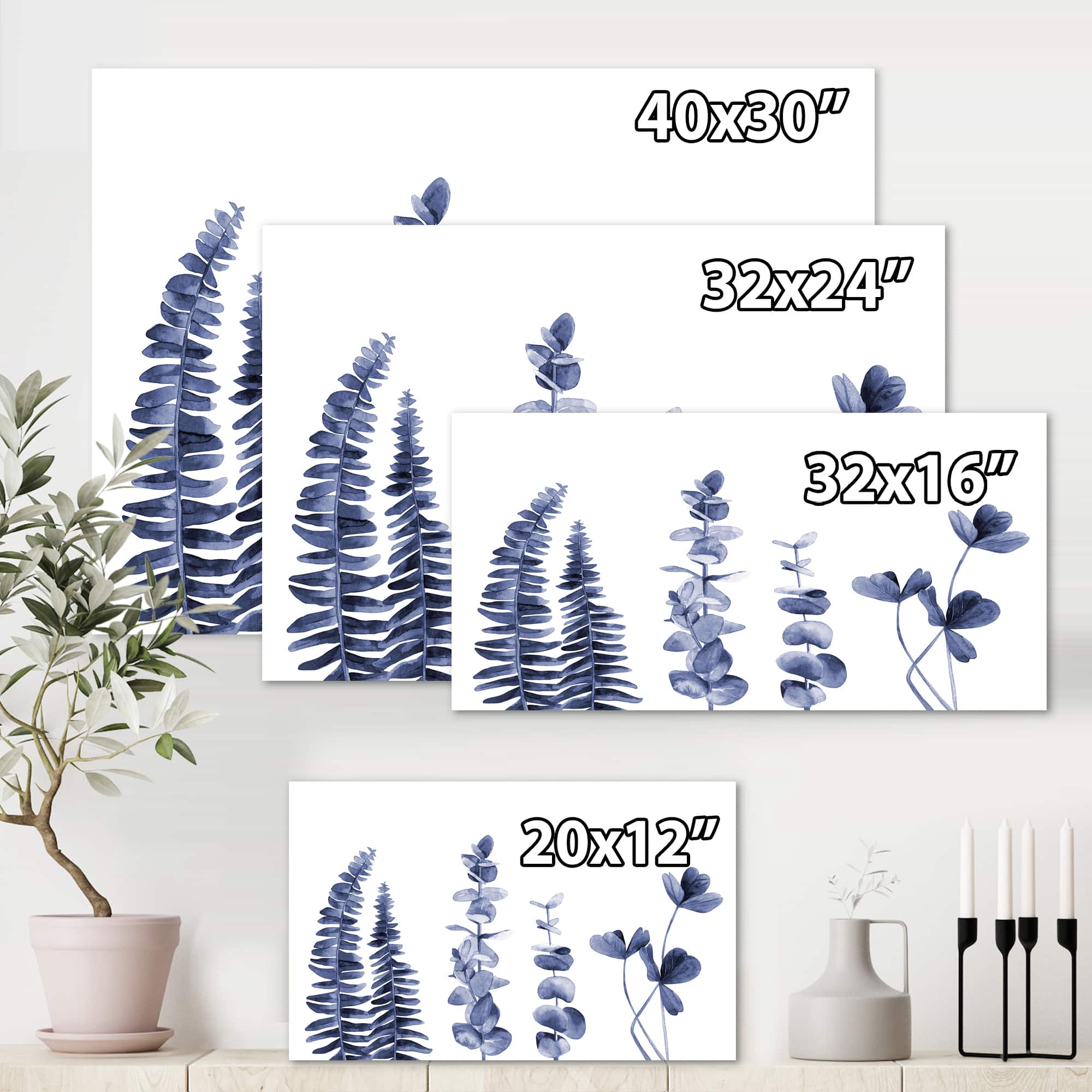 Designart - Navy Blue Eucalyptus I - Traditional Canvas Wall Art Print