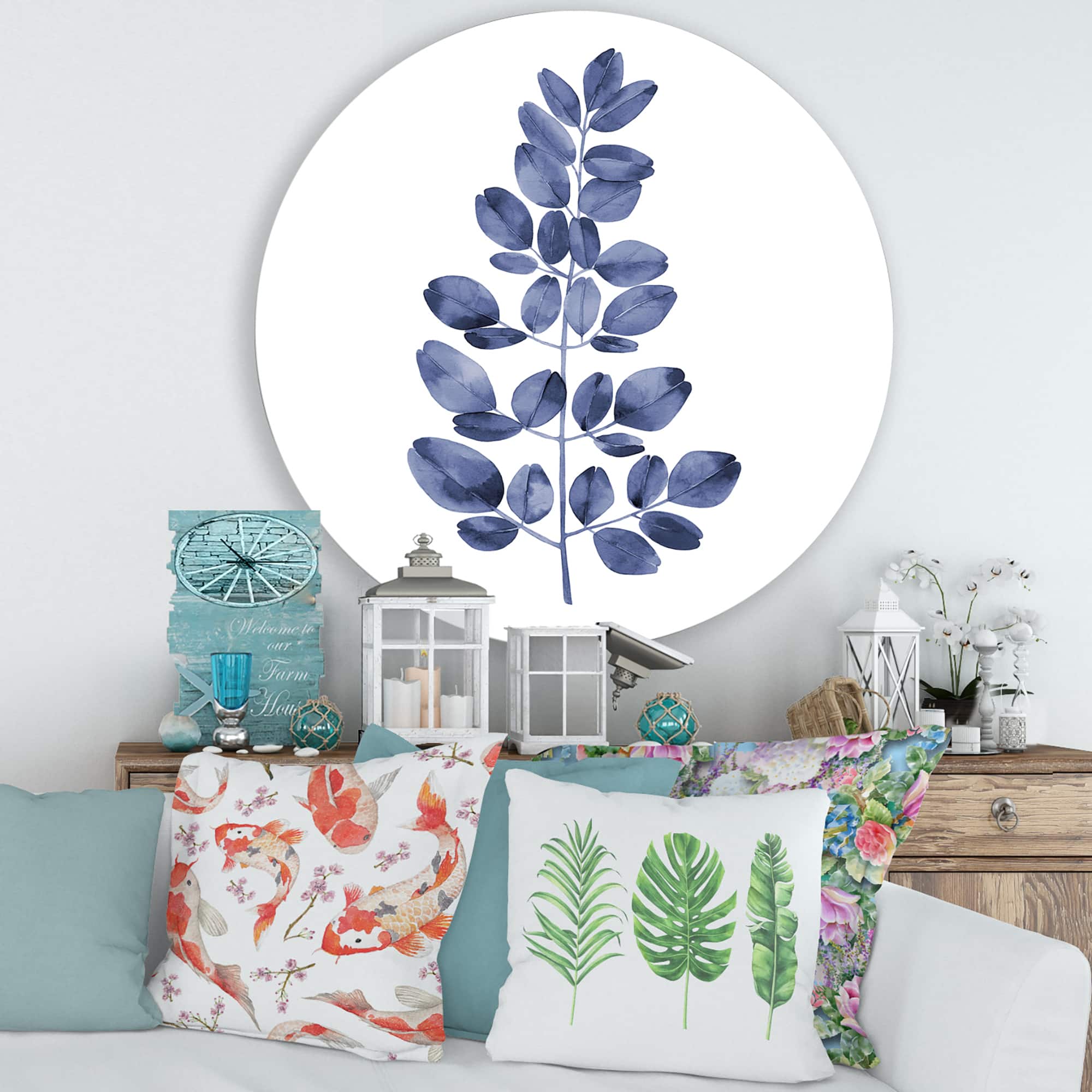 Designart - Navy Blue Eucalyptus II - Traditional Metal Circle Wall Art