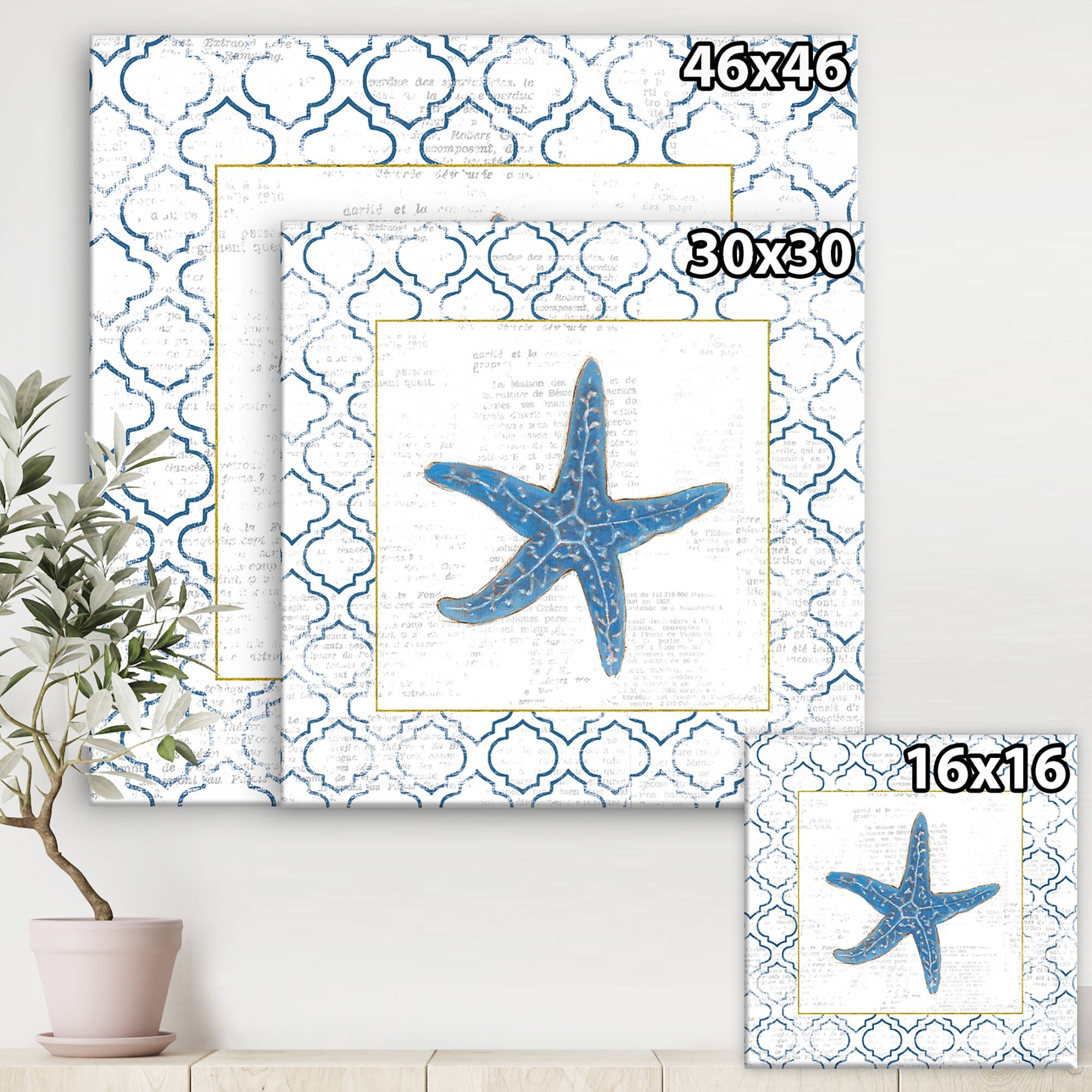 Designart - Navy Starfish with Gold - Nautical & Coastal Premium Canvas Wall Art