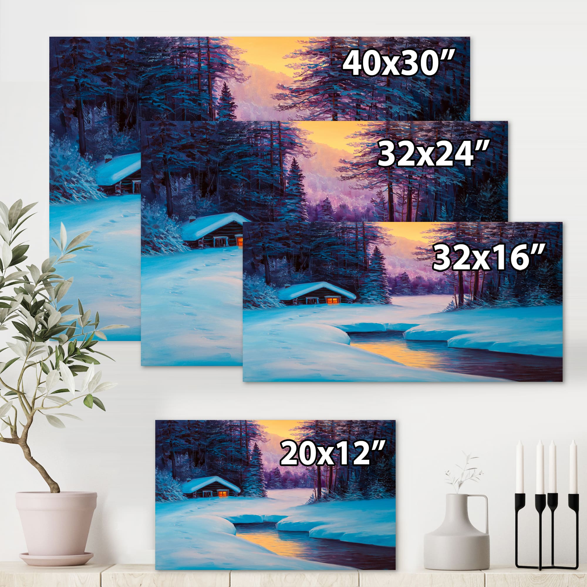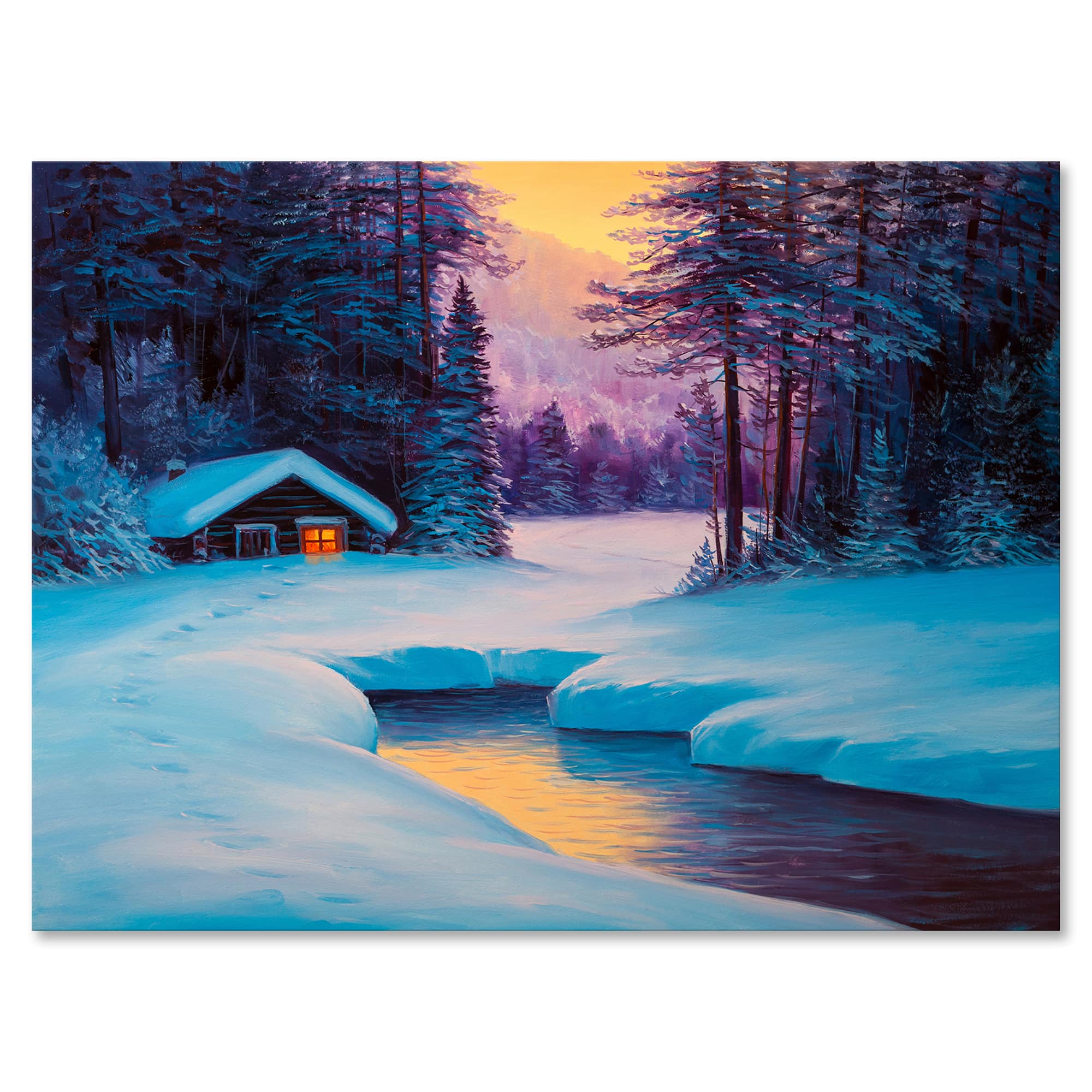 Designart - Old Cabin In Winter Forest II - Traditional Canvas Wall Art Print