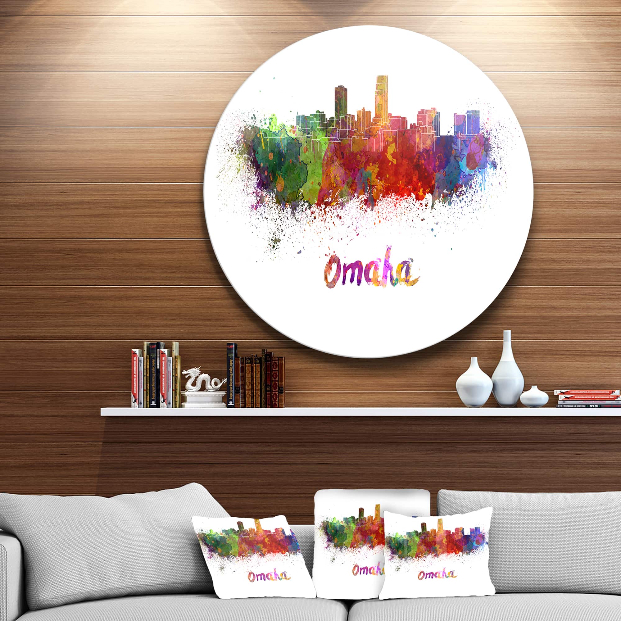 Designart - Omaha Skyline' Disc Cityscape Circle Metal Wall Art