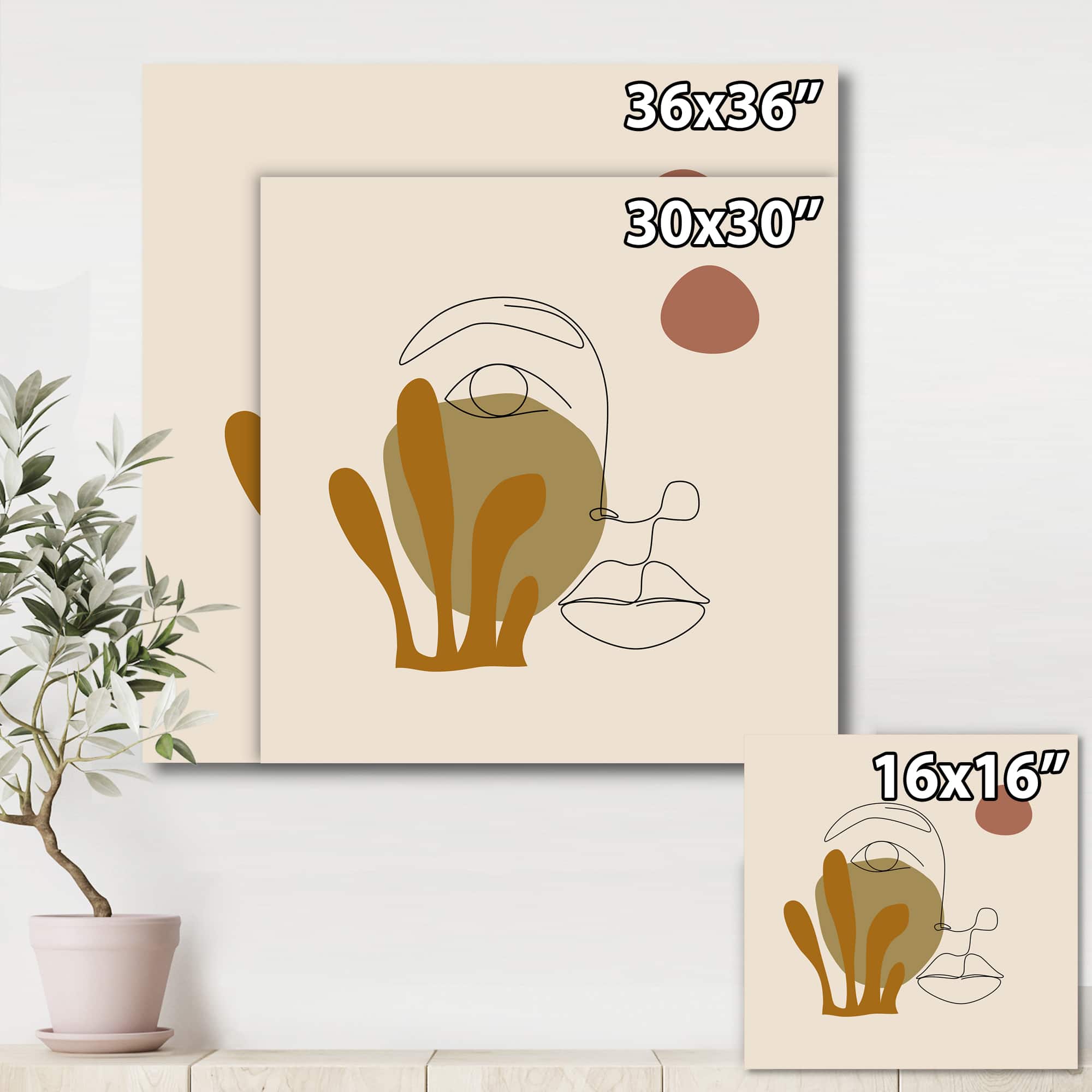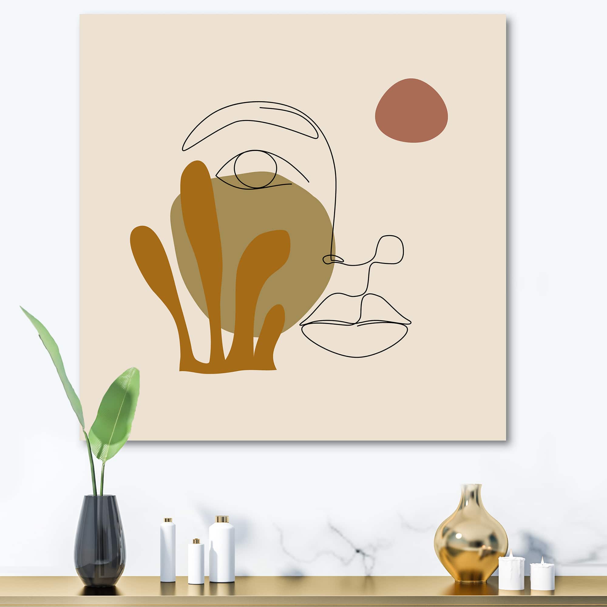 Designart - One Line Art Portrait of Woman In Terracotta Tones - Modern Canvas Wall Art Print