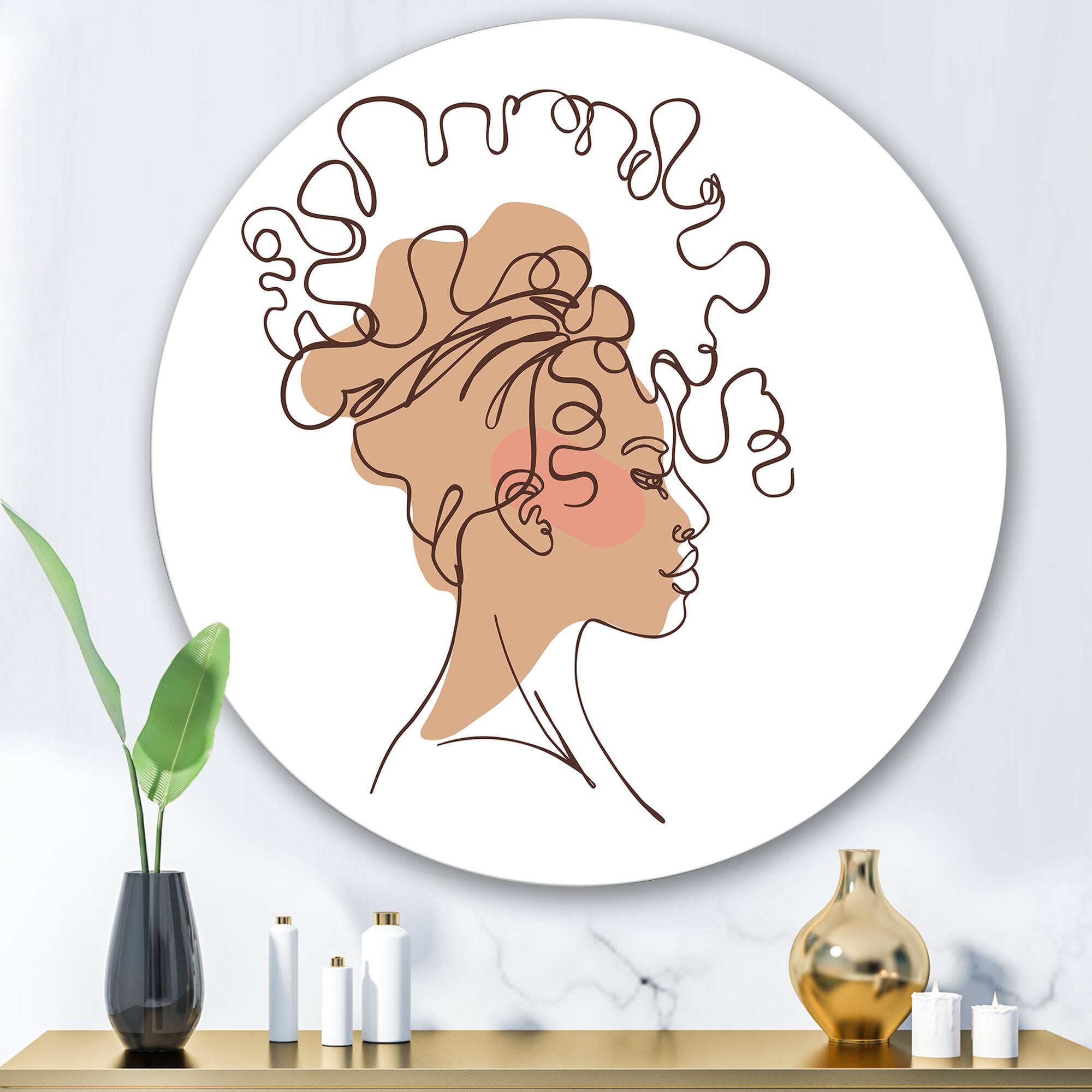 Designart - One Line Portrait of African American Woman I - Modern Metal Circle Wall Art