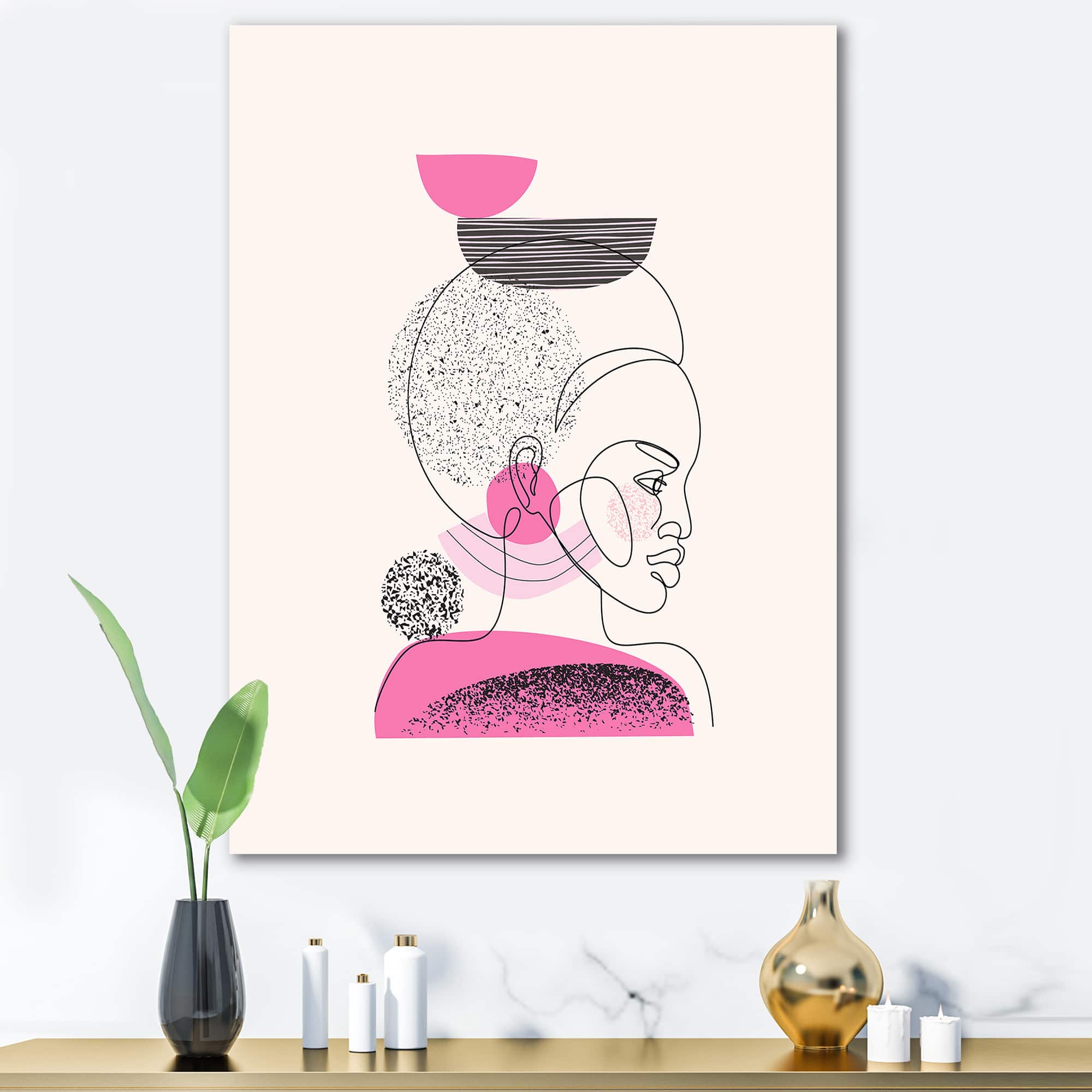 Designart - One Line Portrait of African American Women I - Modern Canvas Wall Art Print