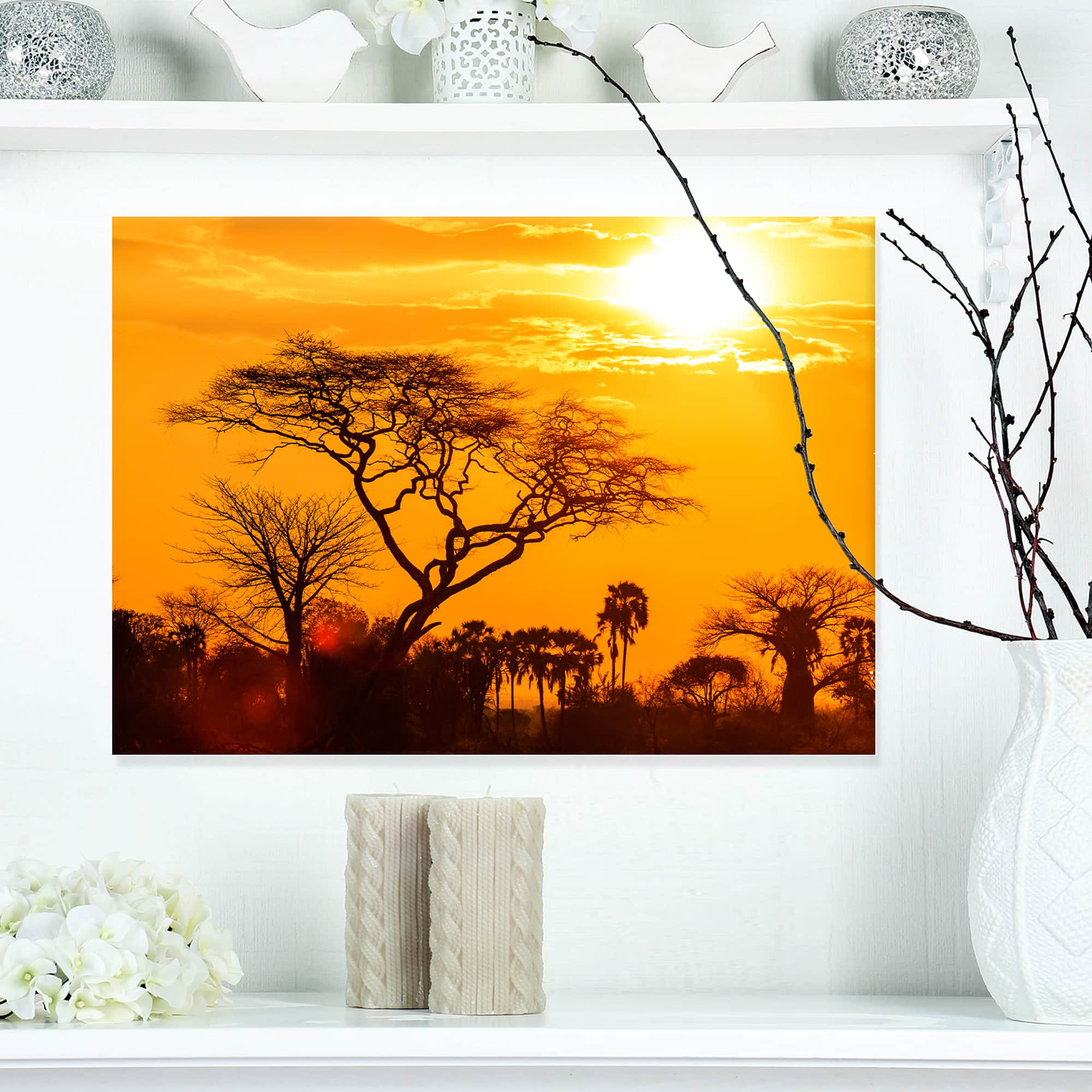 Designart - Orange Glow of African Sunset - Extra Large Wall Art Landscape