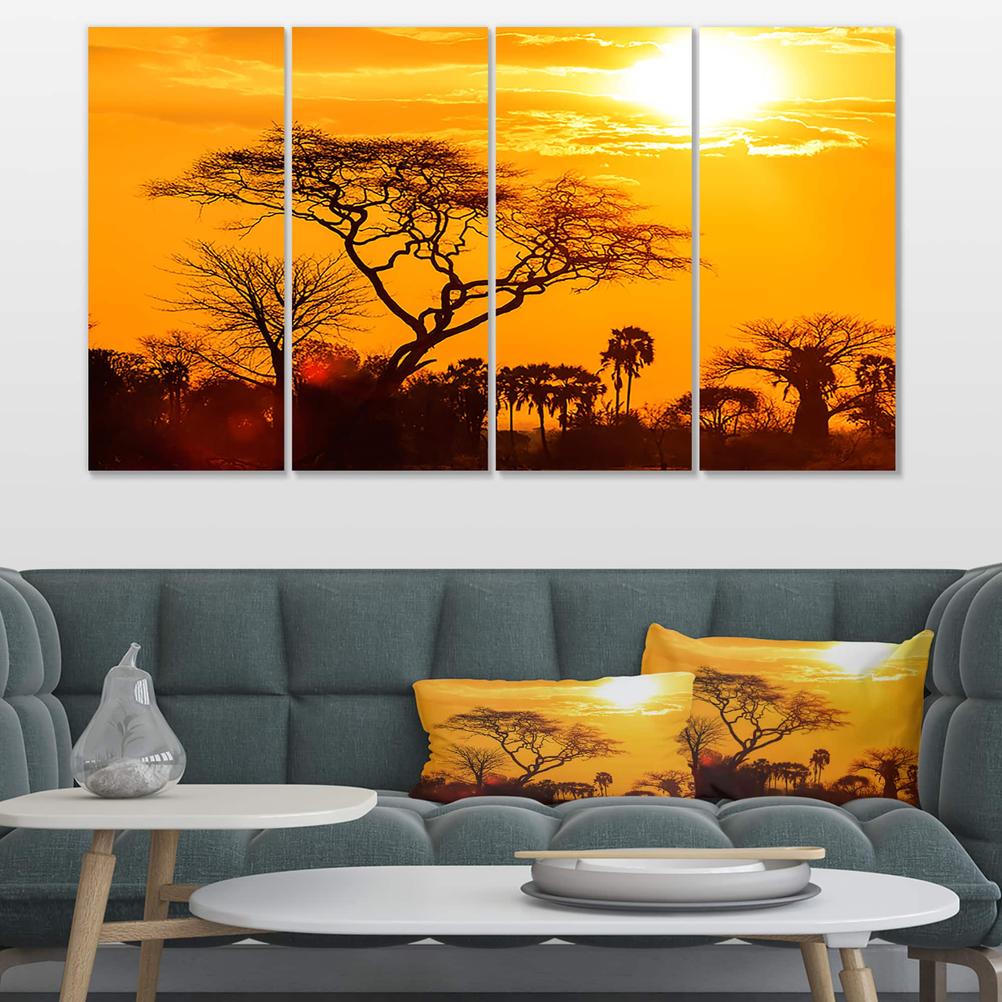 Designart - Orange Glow of African Sunset - Extra Large Wall Art Landscape