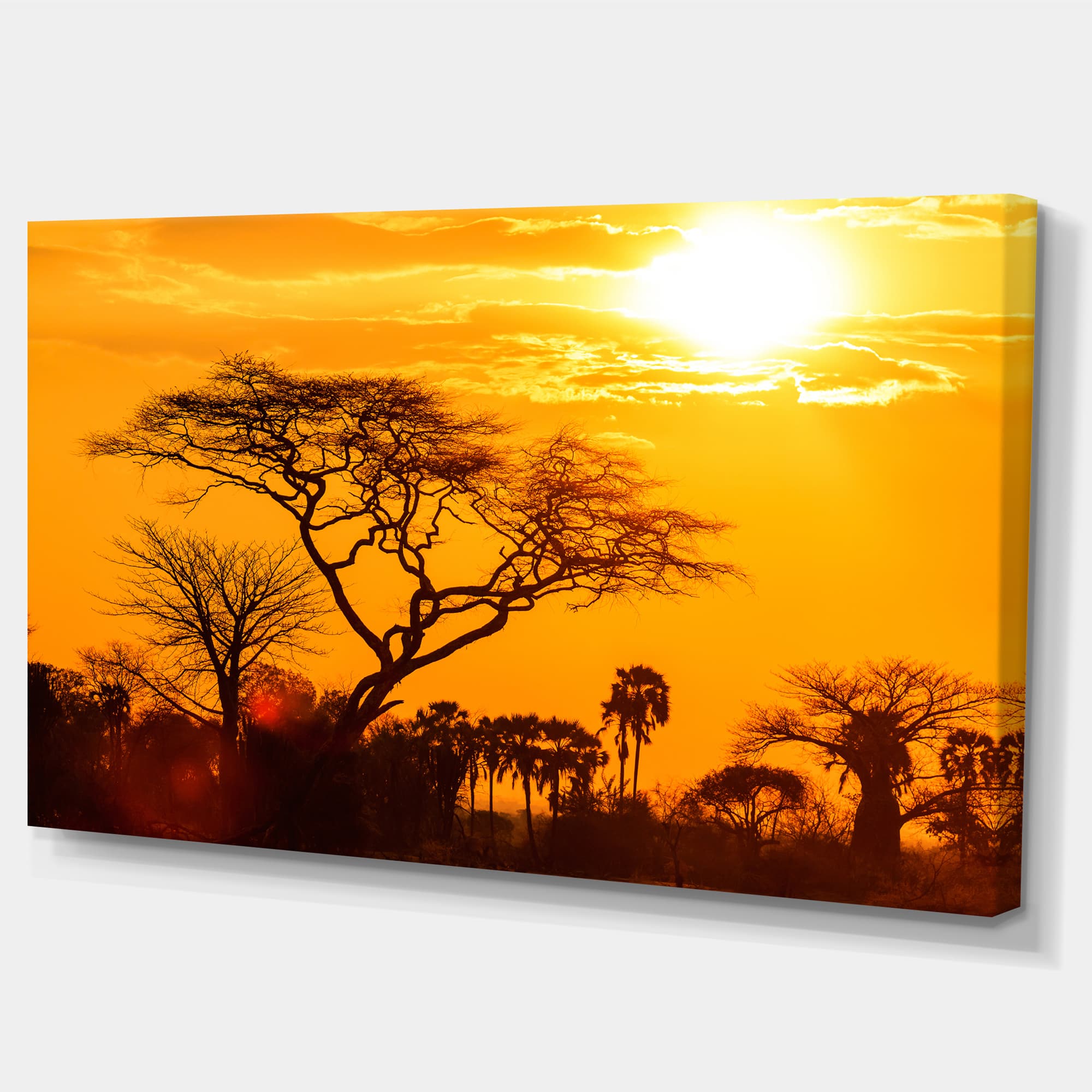 Designart - Orange Glow of African Sunset - Extra Large Wall Art Landscape