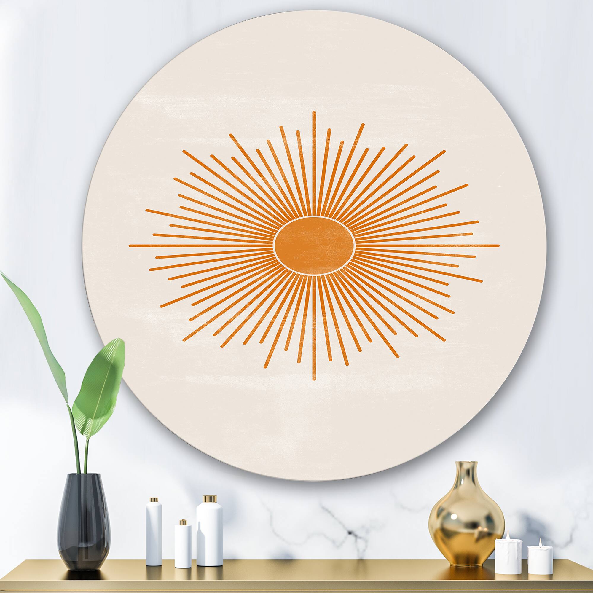 Designart - Orange Sun Print II - Modern Metal Circle Wall Art