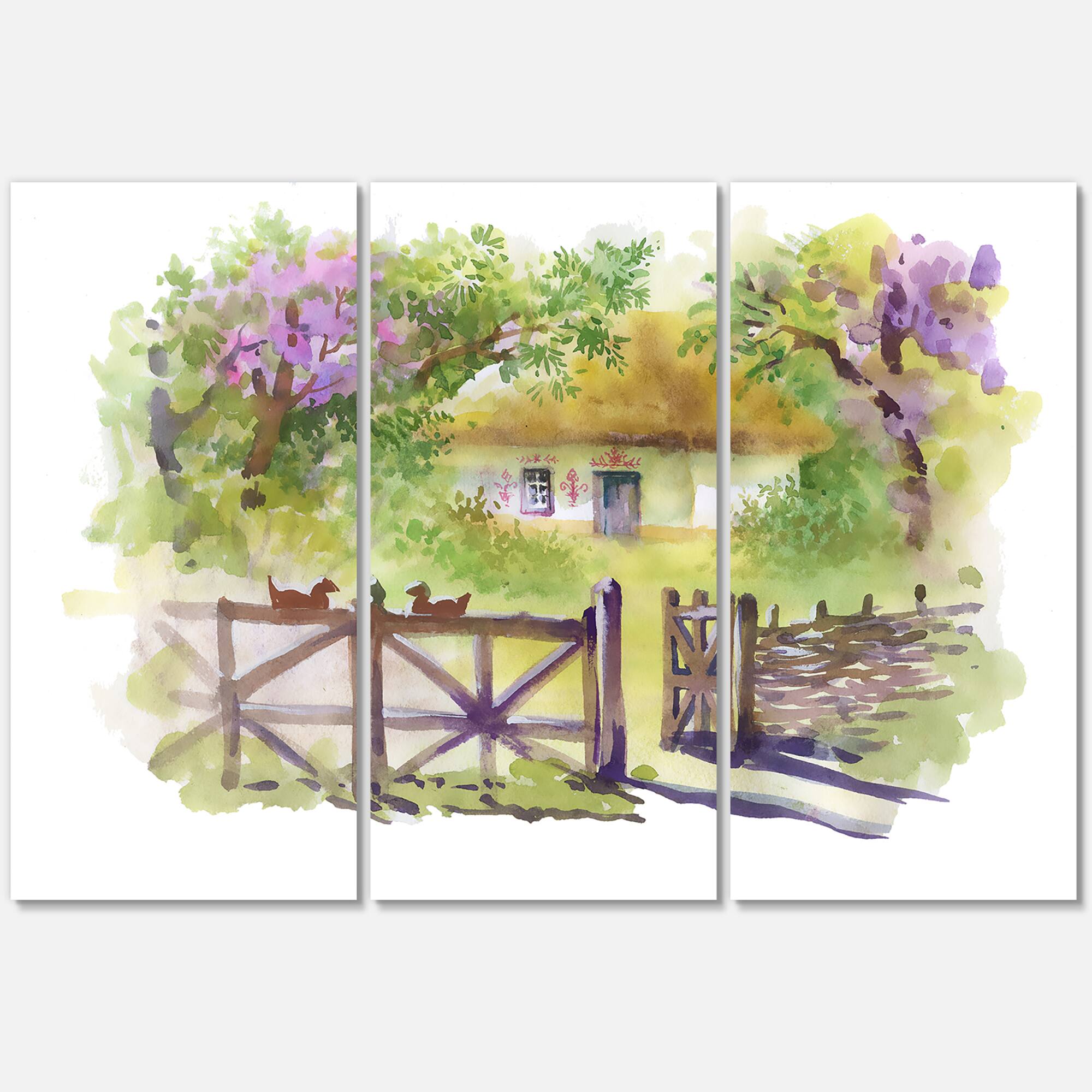 Designart - Painting Of Rustic Cottage In The Woods - Traditional Canvas Wall Art Print