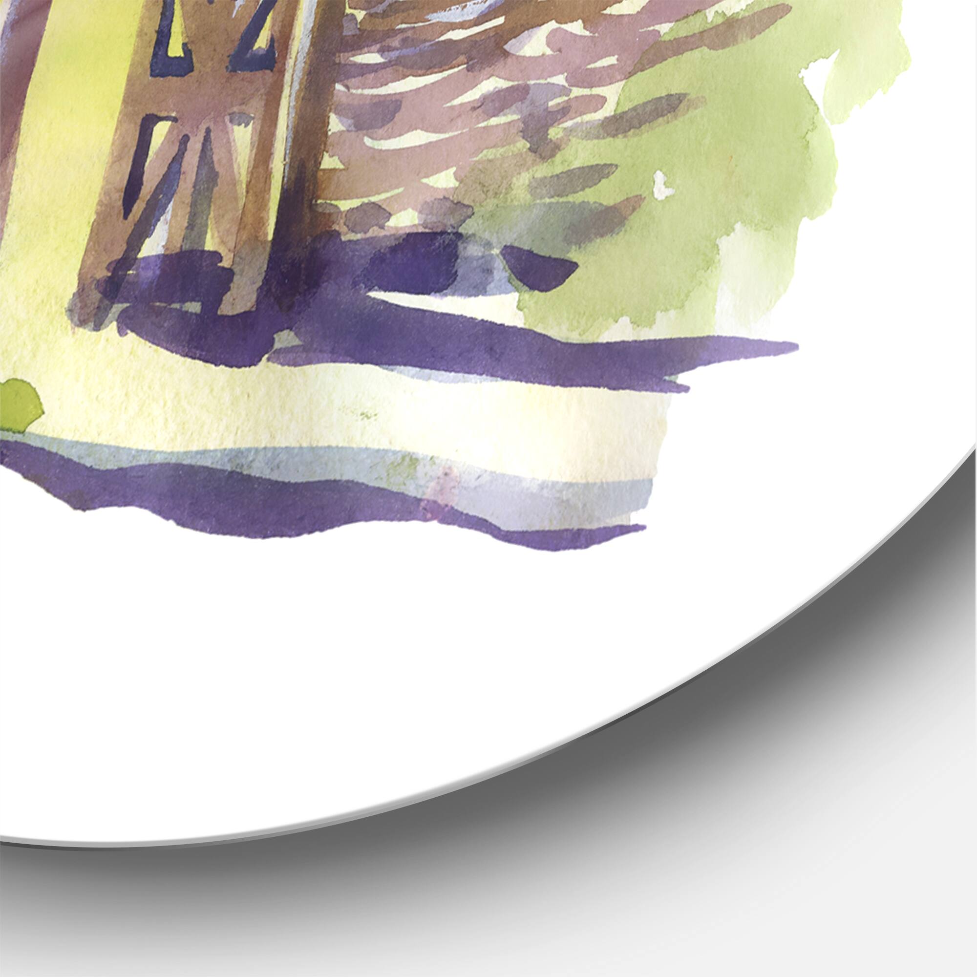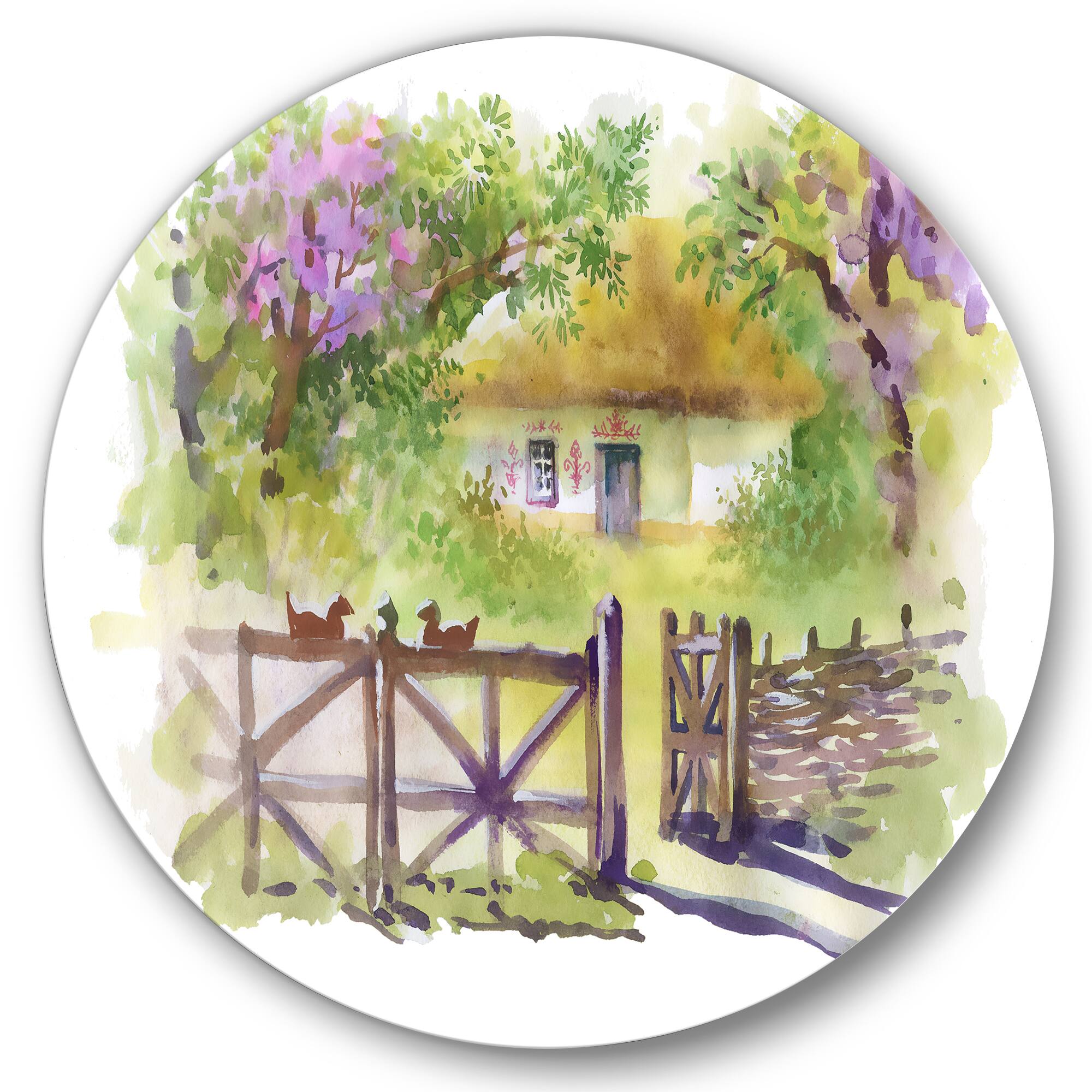 Designart - Painting Of Rustic Cottage In The Woods - Traditional Metal Circle Wall Art