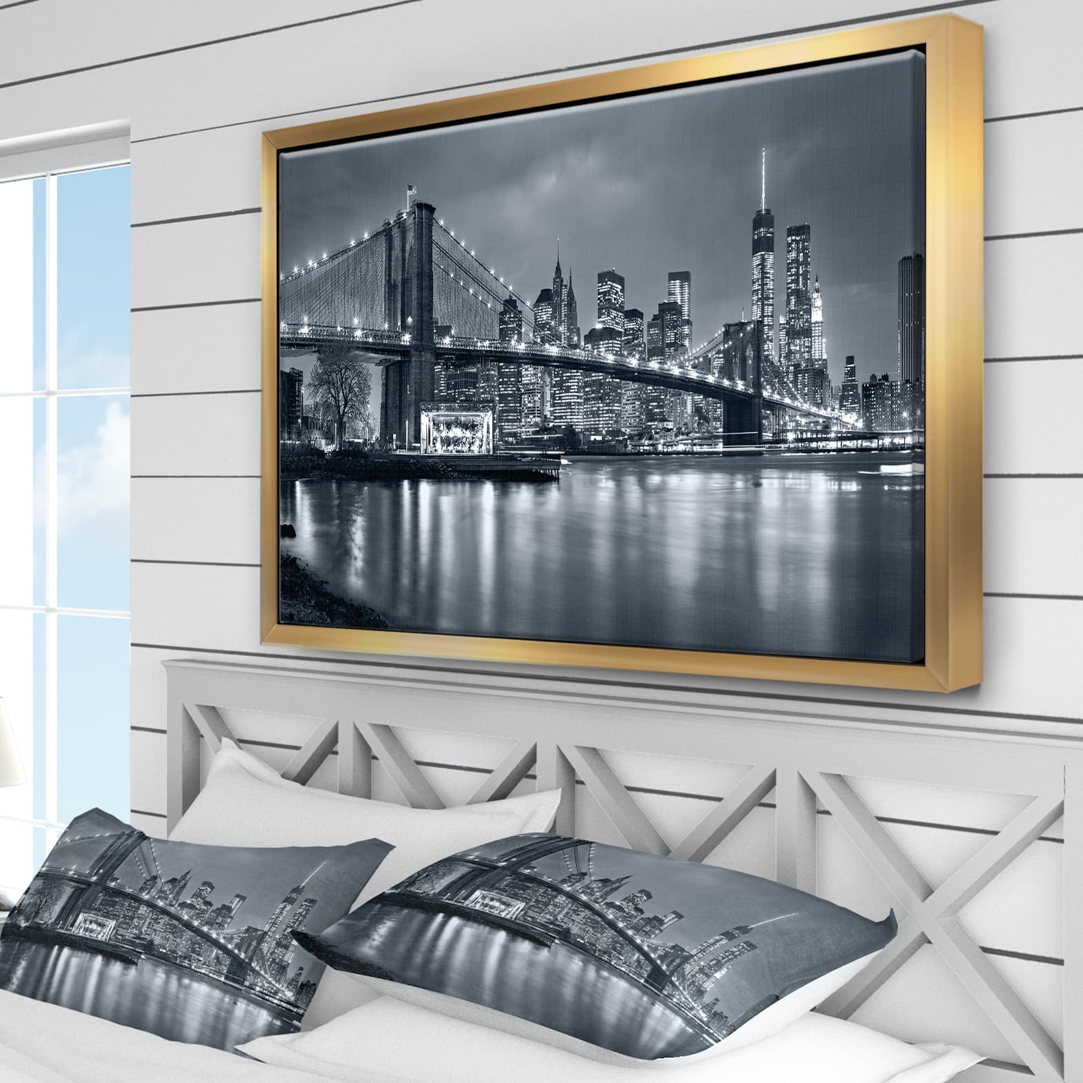 Designart - Panorama New York City at Night - Cityscape Framed Canvas Print