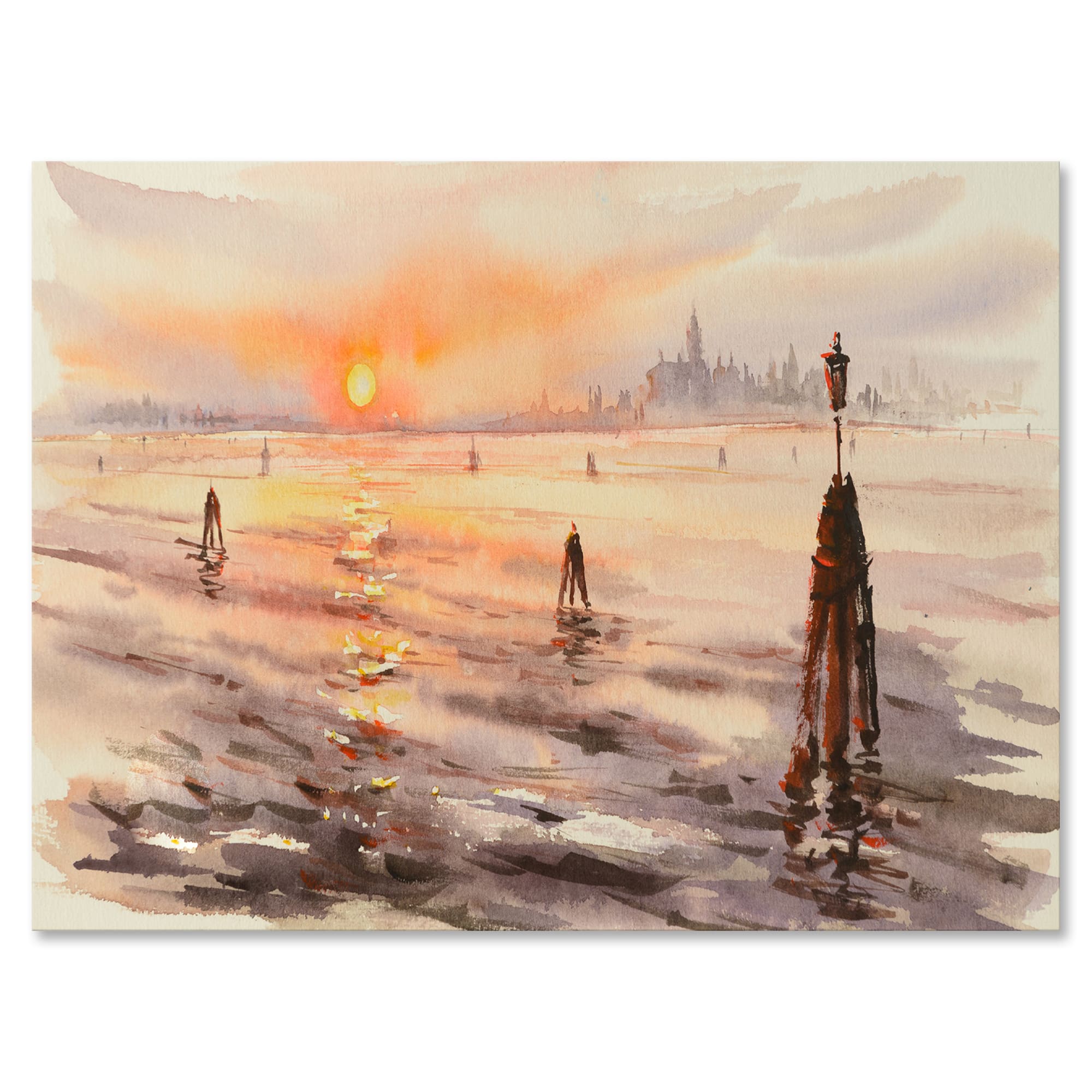 Designart - Panorama of Venice Laguna At Sunset - Nautical & Coastal Canvas Wall Art Print