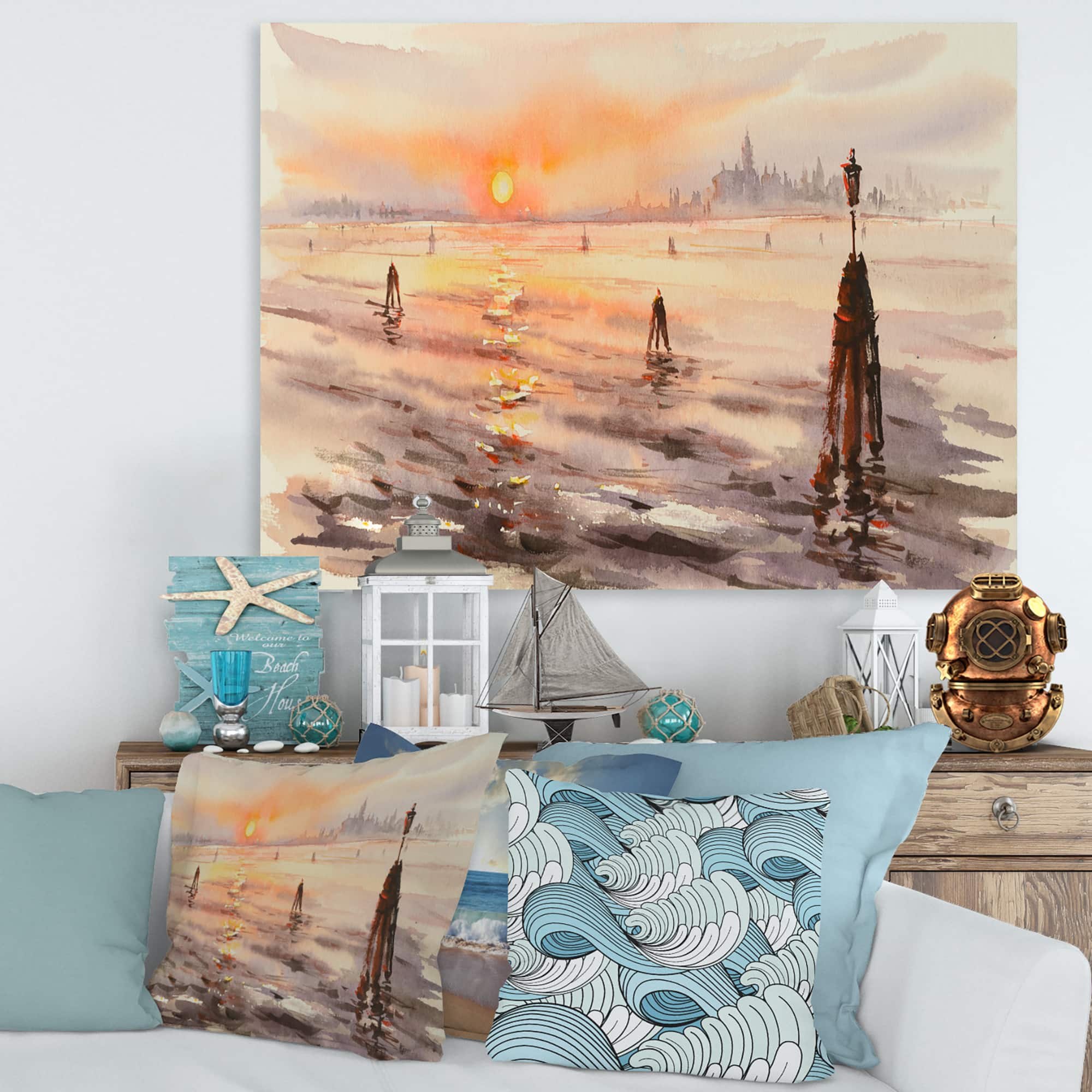 Designart - Panorama of Venice Laguna At Sunset - Nautical & Coastal Canvas Wall Art Print