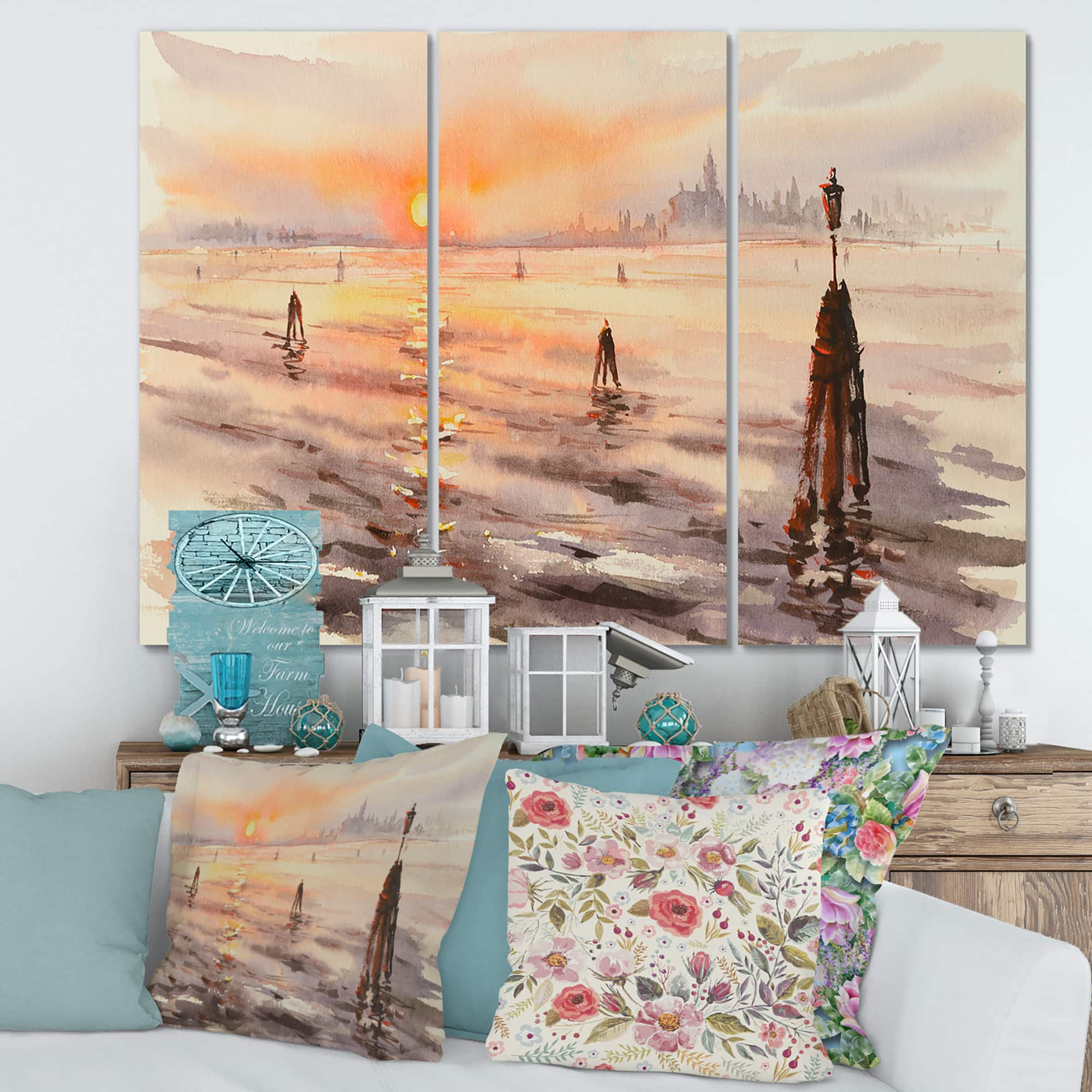 Designart - Panorama of Venice Laguna At Sunset - Nautical & Coastal Canvas Wall Art Print