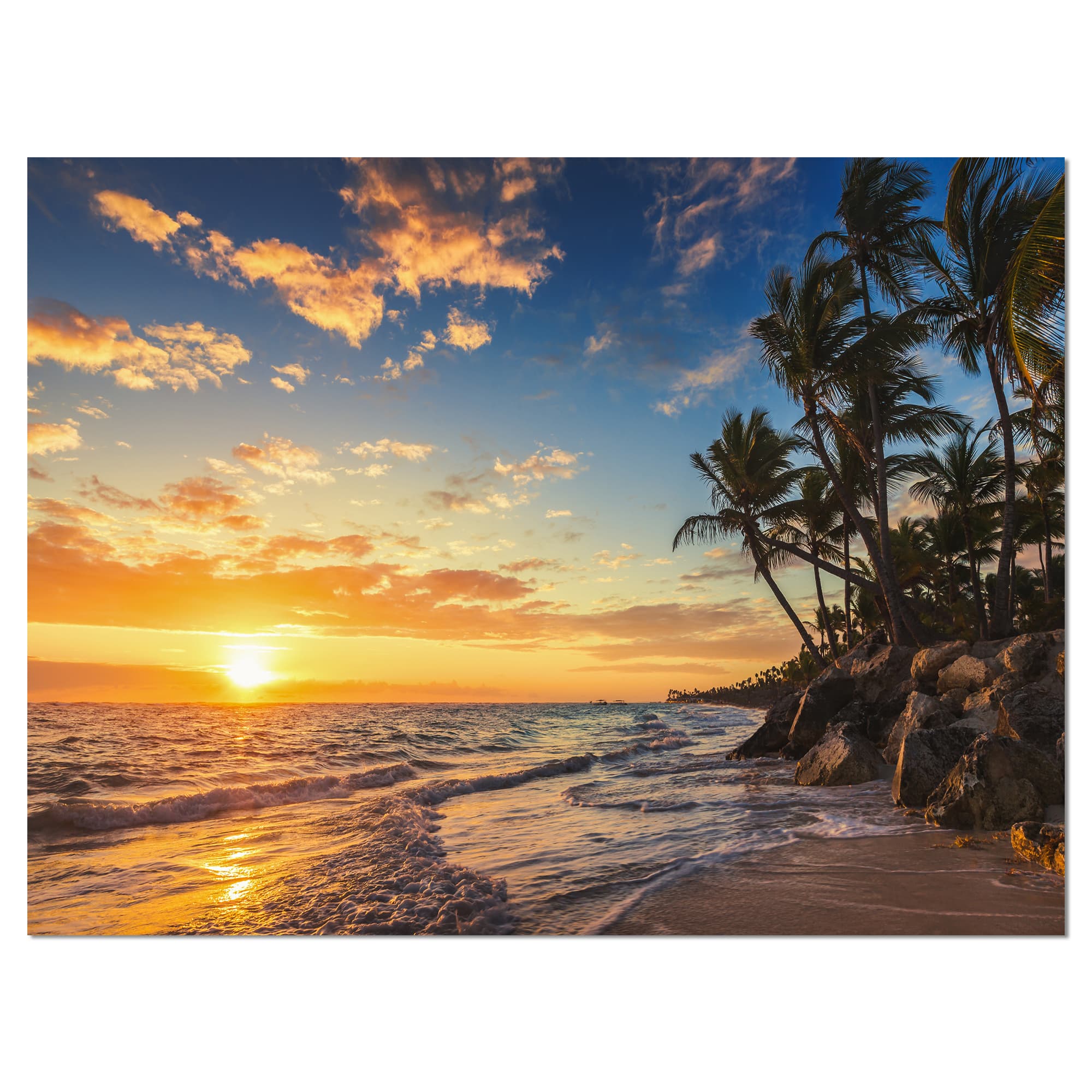 Designart - Paradise Tropical Island Beach with Palms - Extra Large Seascape Art Canvas