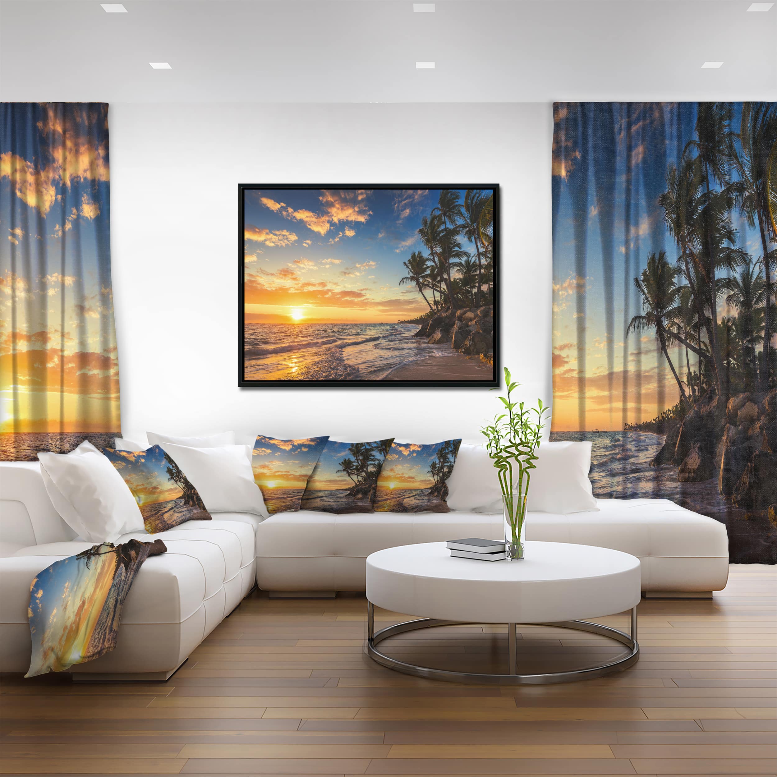 Designart - Paradise Tropical Island Beach with Palms - Extra Large Seascape Art Framed Canvas