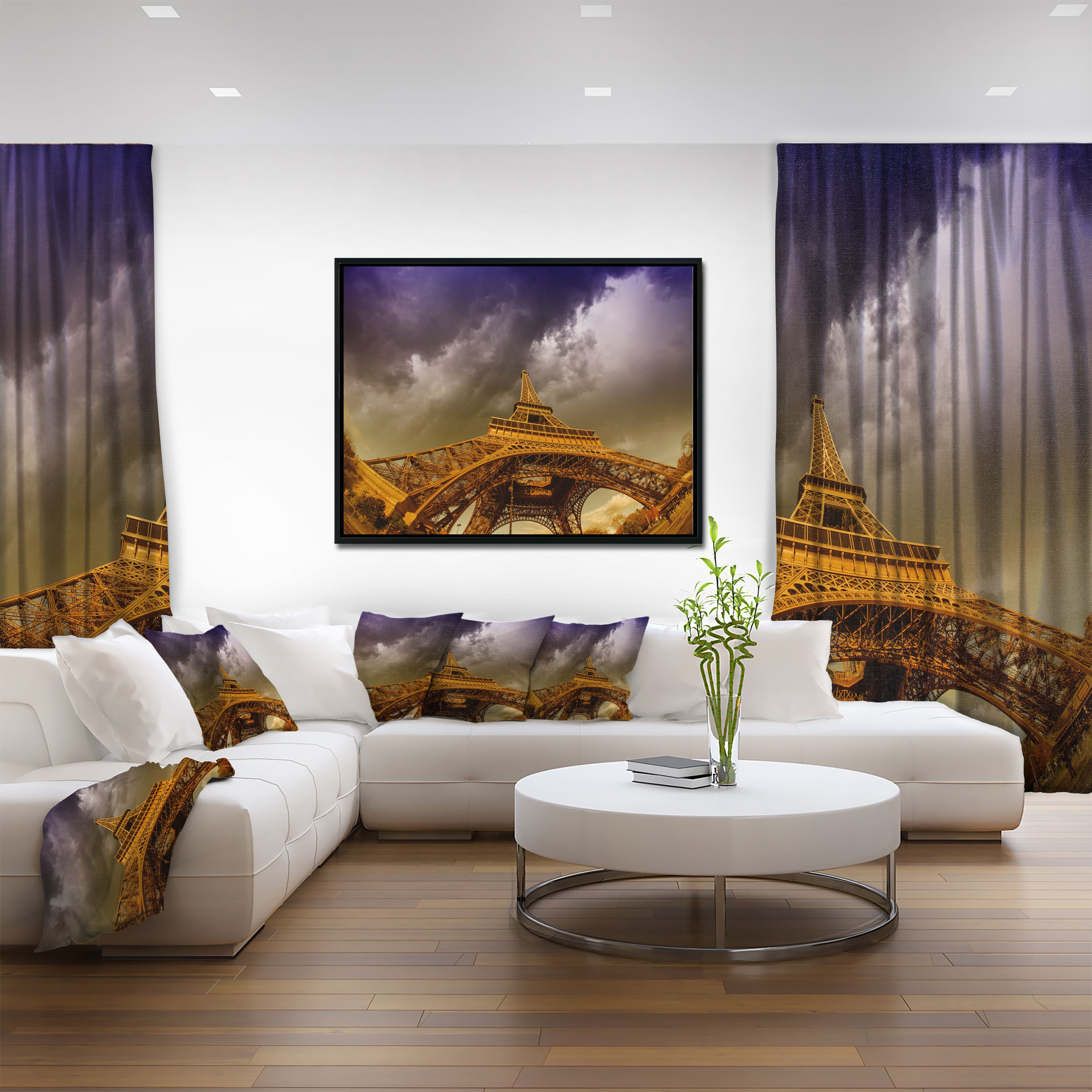 Designart - Paris Eiffel Towerand Gorgeous Sky - Photography Canvas Art Print in Black Frame