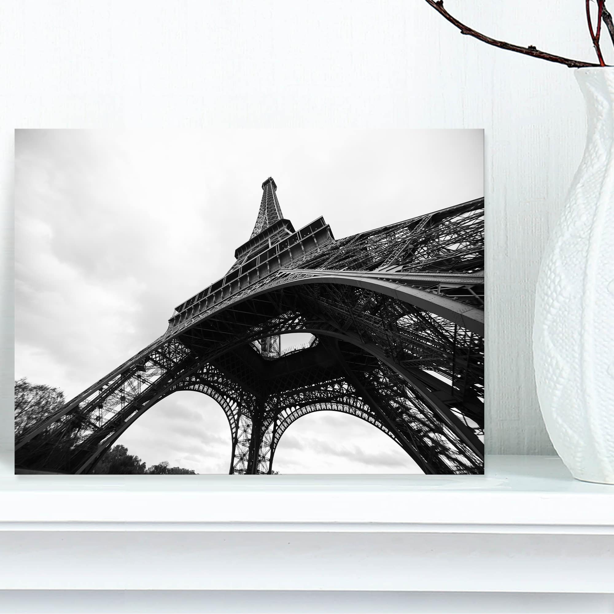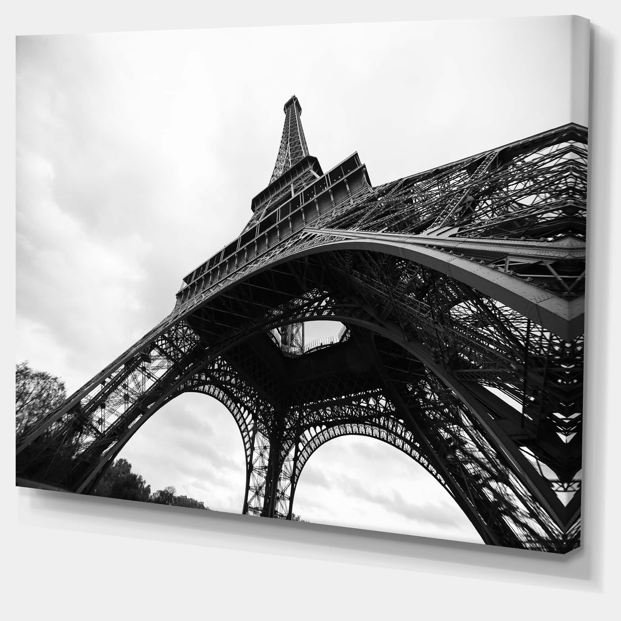Designart - Paris Paris Eiffel Towerin Black and White Side View - Cityscape Canvas Print