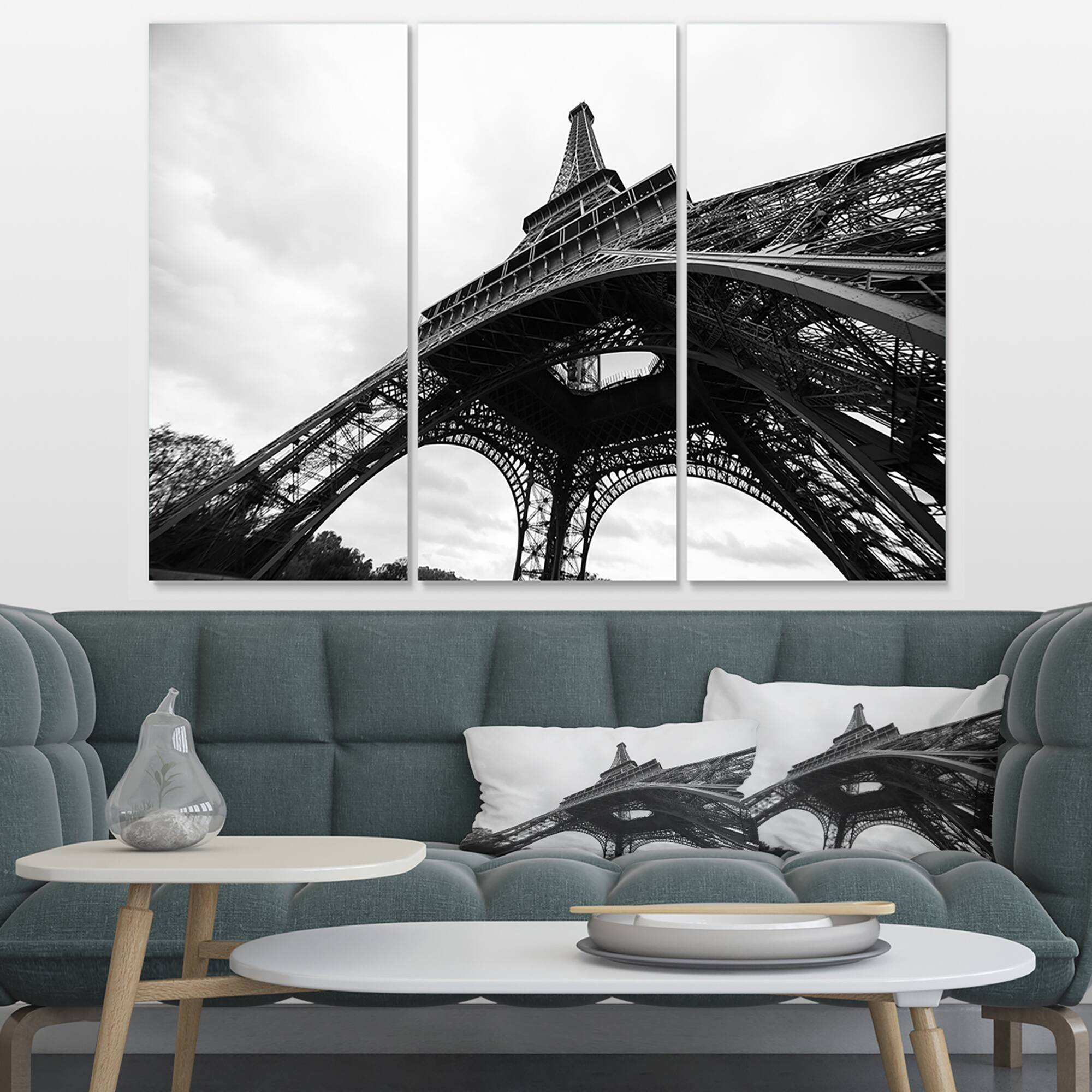 Designart - Paris Paris Eiffel Towerin Black and White Side View - Cityscape Canvas Print