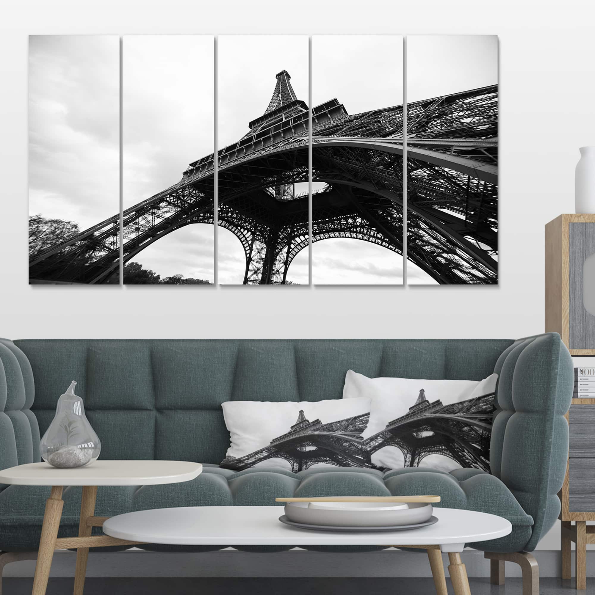 Designart - Paris Paris Eiffel Towerin Black and White Side View - Cityscape Canvas Print