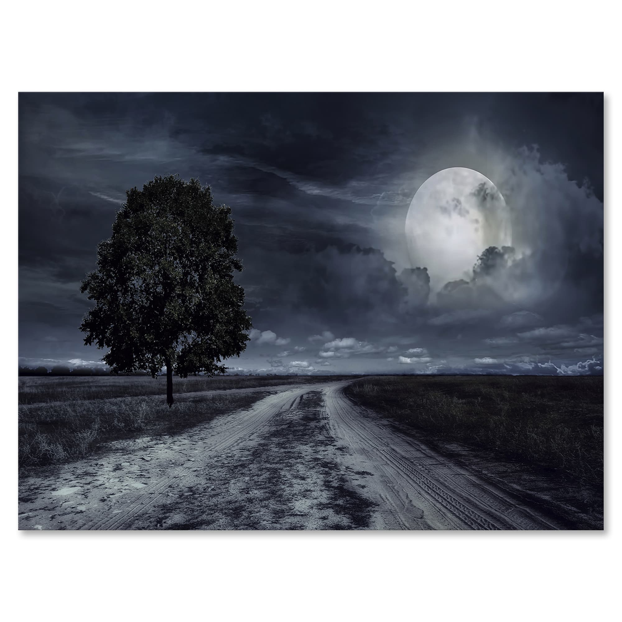 Designart - Paved Road Under A Full Moon - Nautical & Coastal Canvas Wall Art Print